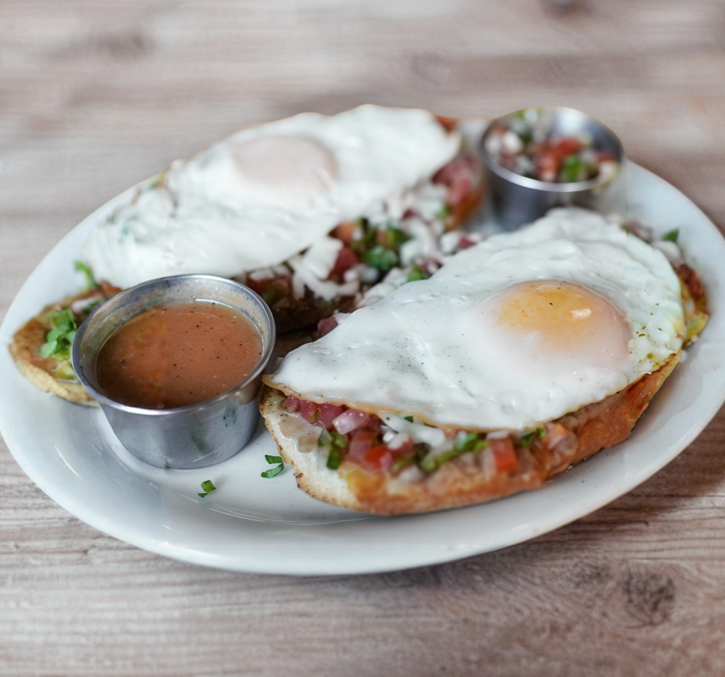 Ricos molletes; elaborados a base de bolillo del dia; con frijoles fritos y huevo estrellado. Incluye pico de gallo y nuestra unica salsa roja.