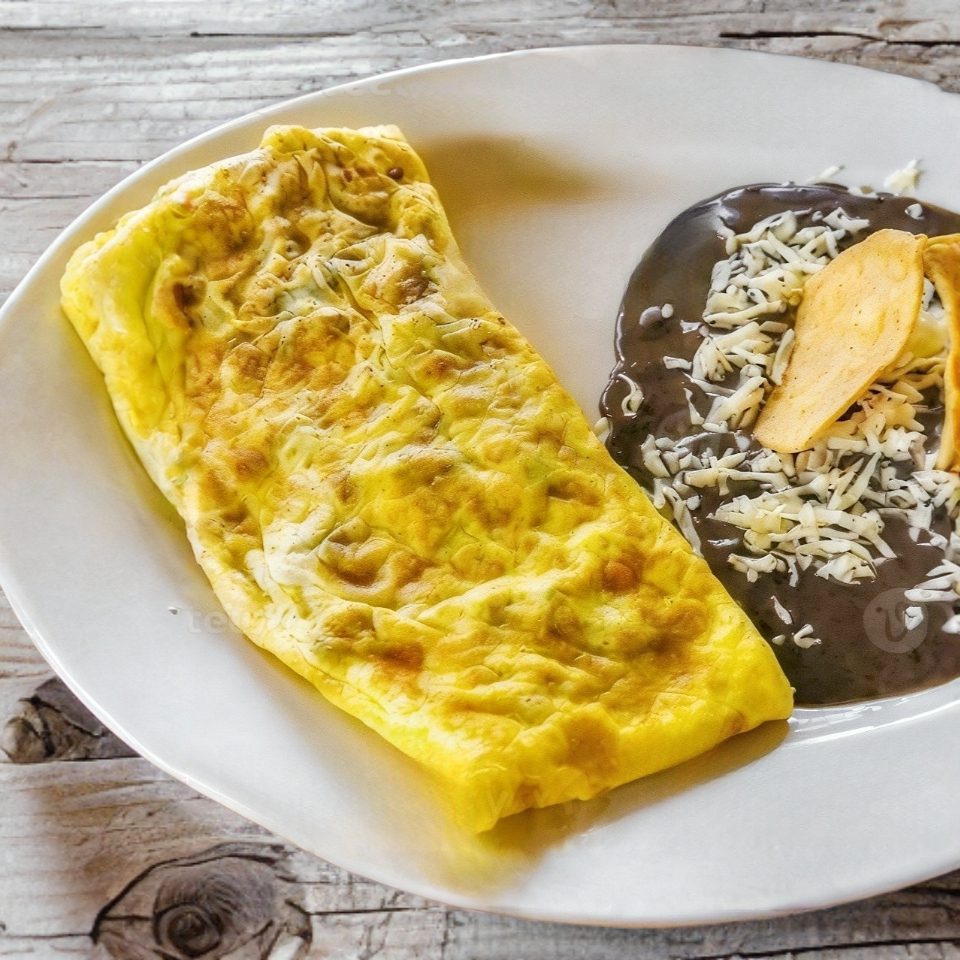 Delicioso omelette mexicano de 3 huevos; acompañado de frijoles fritos, queso panela, aguacate y pico de gallo. Incluye: 1 taza de cafe de su eleccion.