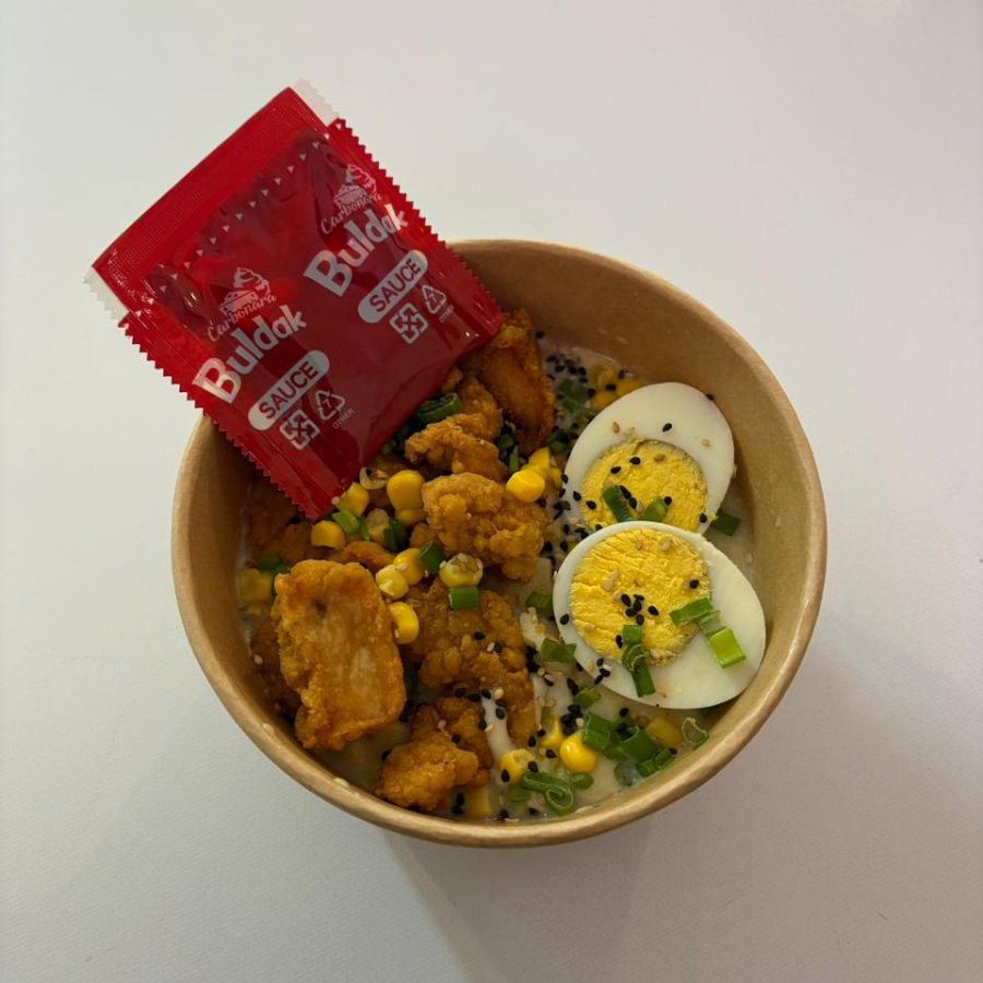 Fideos secos picantes sabor a elegir, acompañados de pollo frito