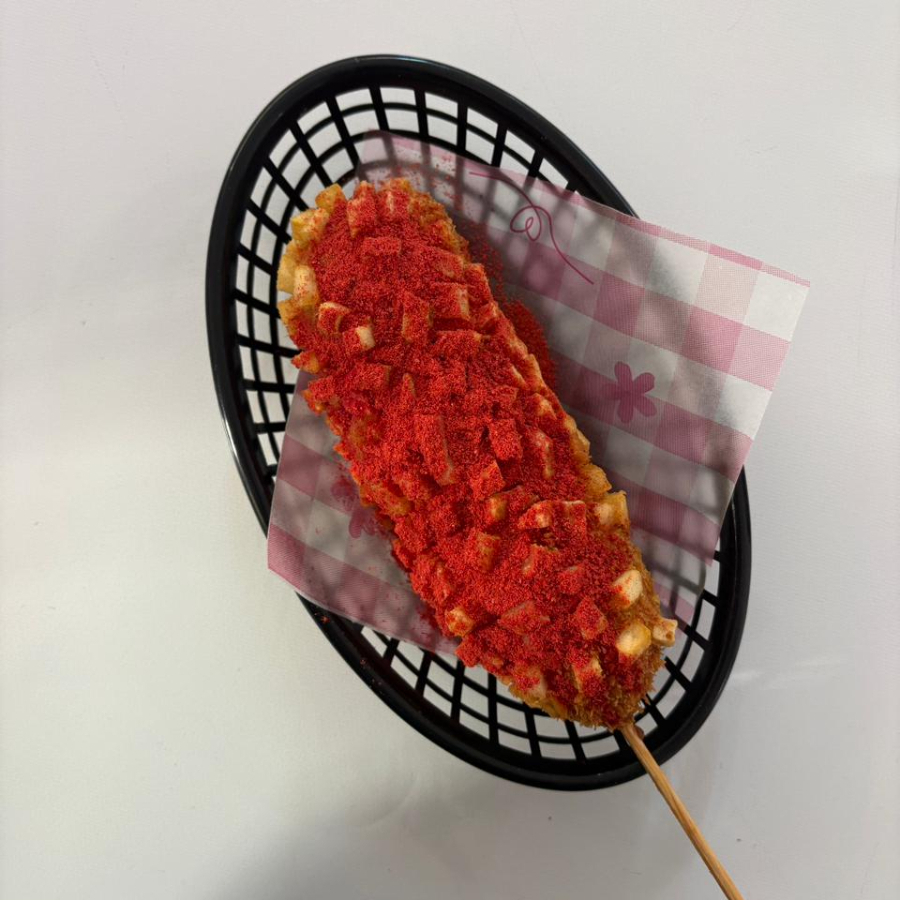 Banderilla de pastel del arroz con salchicha bañada en salsa gochujang dulce