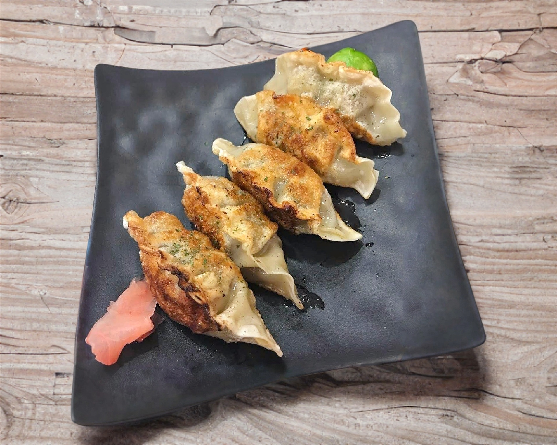 5 piezas de mandu de res fritas.