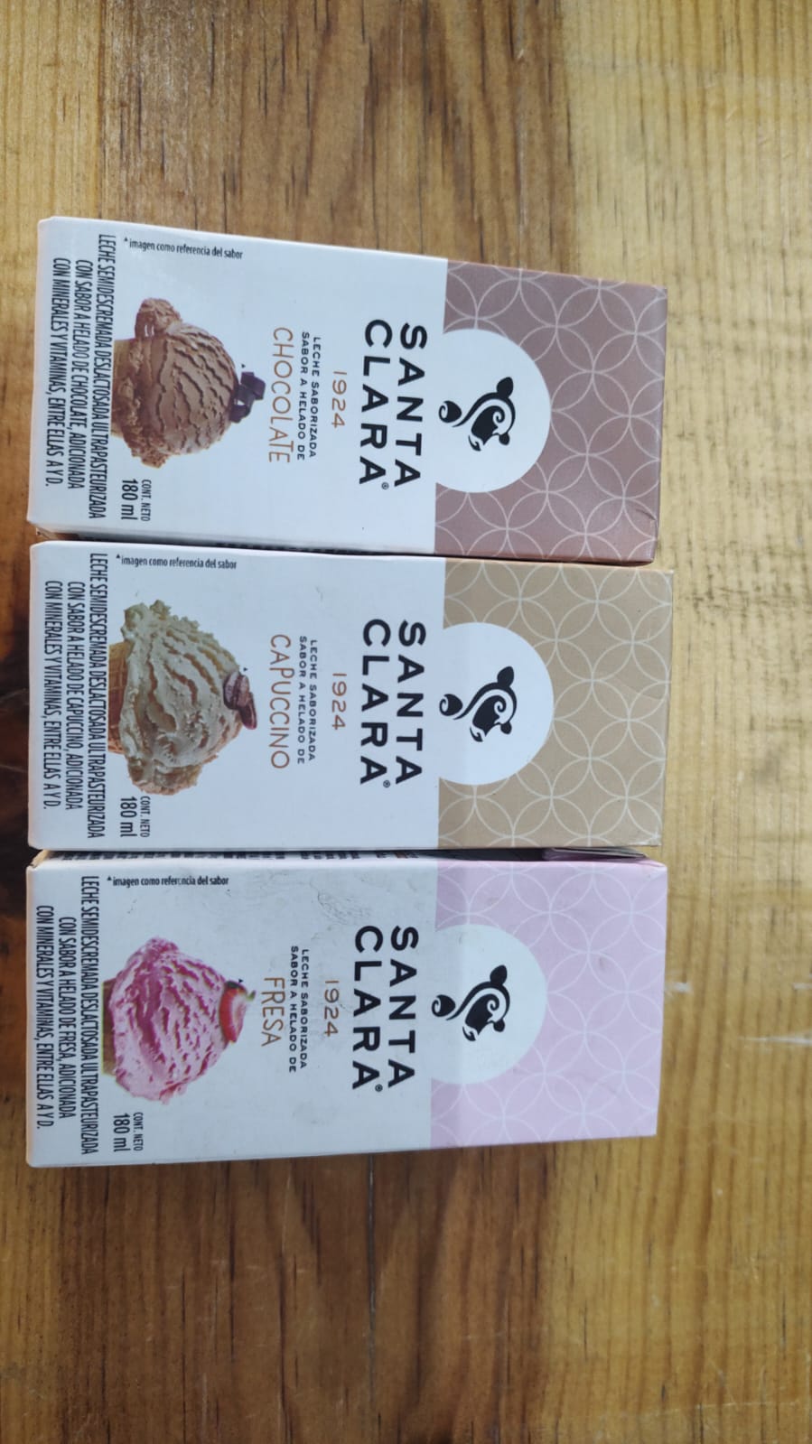 lechita saborizada santa clara sabores helado de chocolate, fresa o capuchino. 180 ml