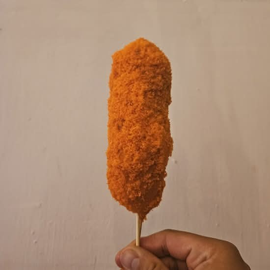 Banderilla coreana crujiente por fuera y suave por dentro. Ideal para un antojo rápido.