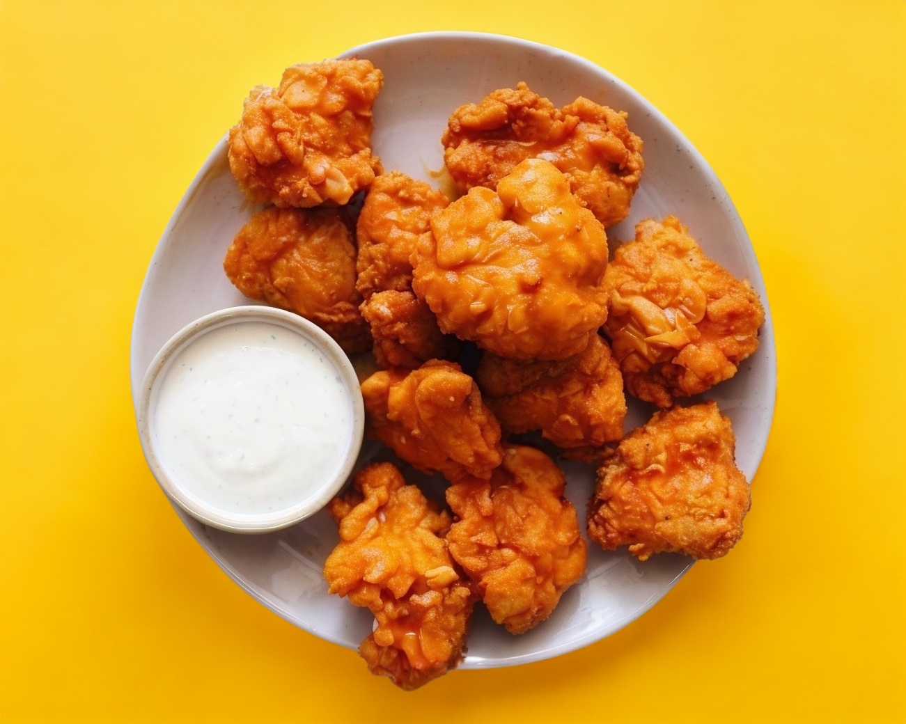 Medio kilo de boneless, aproximadamente entre 18 a 22 piezas. Bañados en la salsa a elección, acompañados con 2 aderezos ranch.