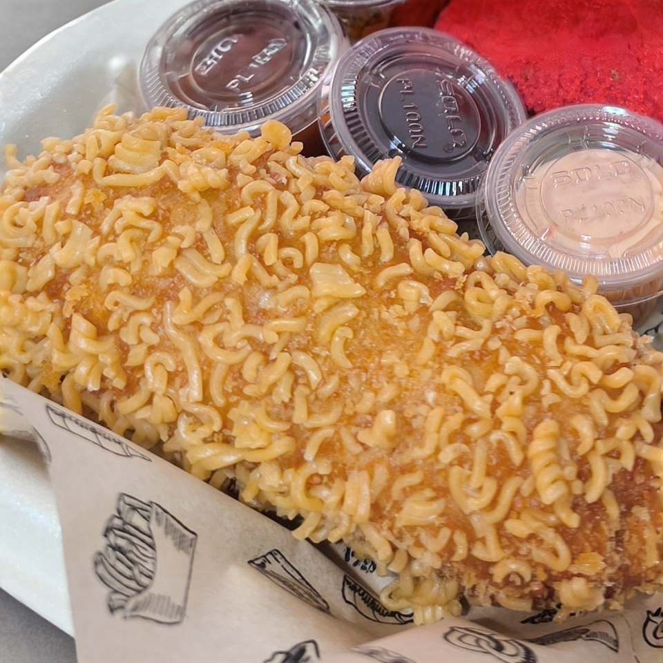 El sabor callejero de Corea, en cada mordida. Salchicha jugosa recubierta de crujientes fideos ramen fritos, aportando una textura única. Perfecta para quienes buscan algo diferente y con personalidad. Incluye dos aderezos a elección para darle tu propio toque.