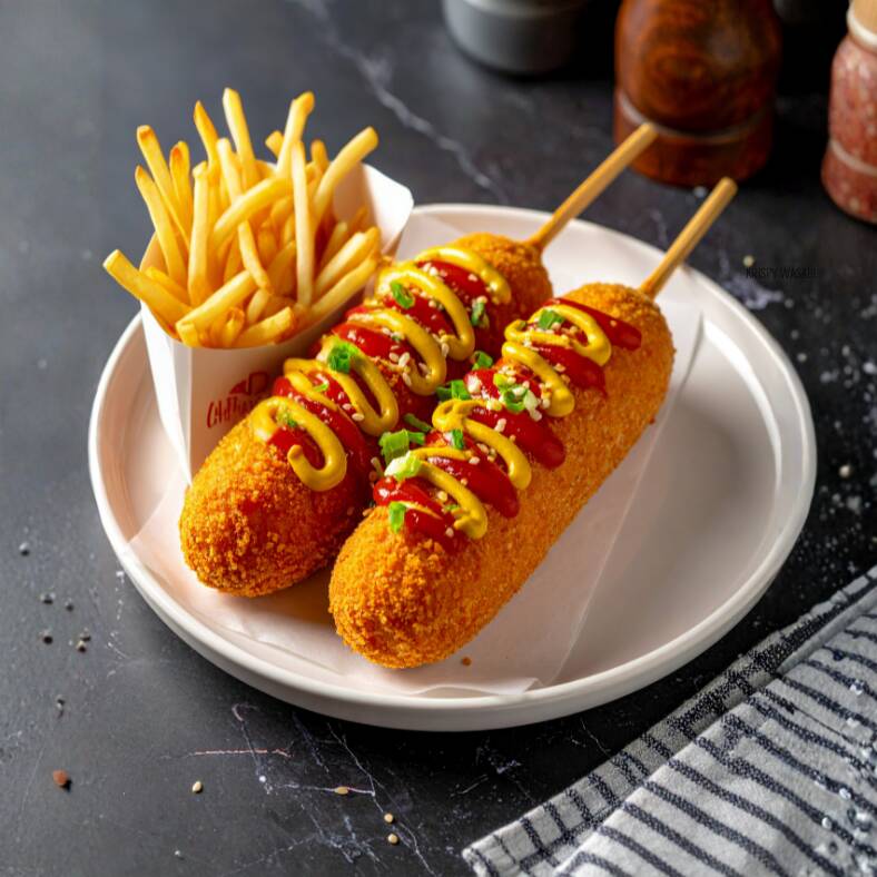 Disfruta 1 banderilla coreana a tu gusto: elige cualquier sabor y cualquier relleno. Acompañada de una porción de papas crujientes de 200 g. Perfecto para un antojo completo, crujiente y lleno de sabor..