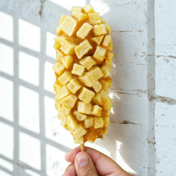 Barra de chocolate con cacahuate empanizada con panko (pan molido coreano)