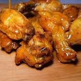 Orden de 12 alitas Mango Habanero, acompañadas de aderezo ranch y salsa valentina