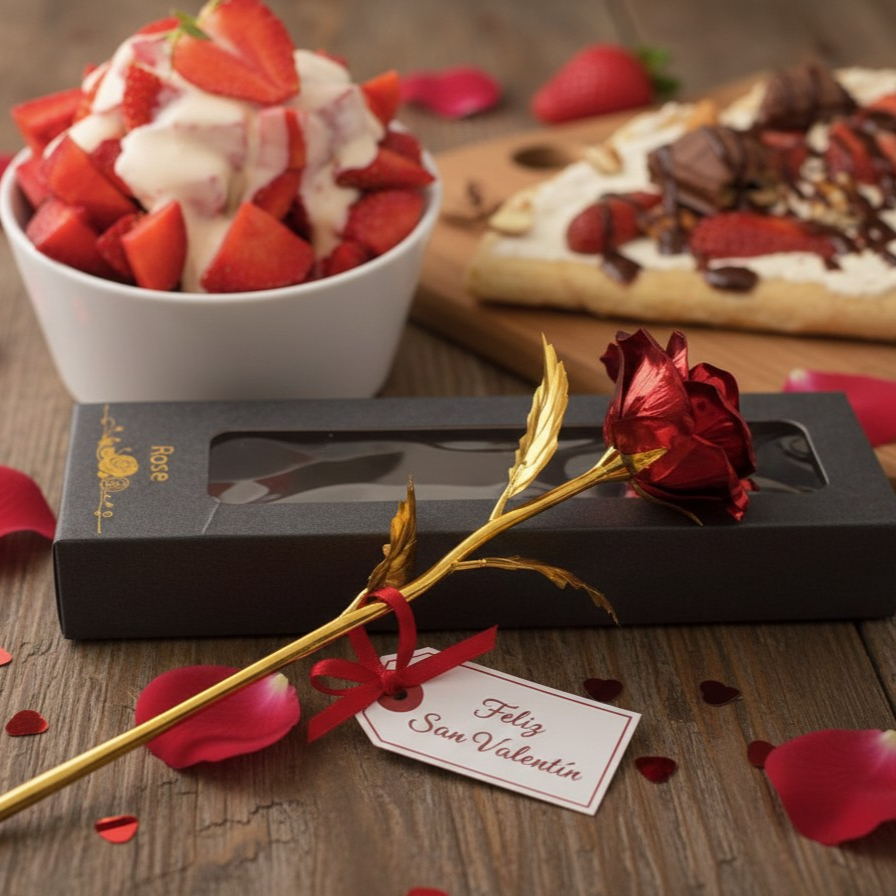 Fresas con Crema, Medio Litro*1 + Rosa Gala*1 + Crepastelito*1