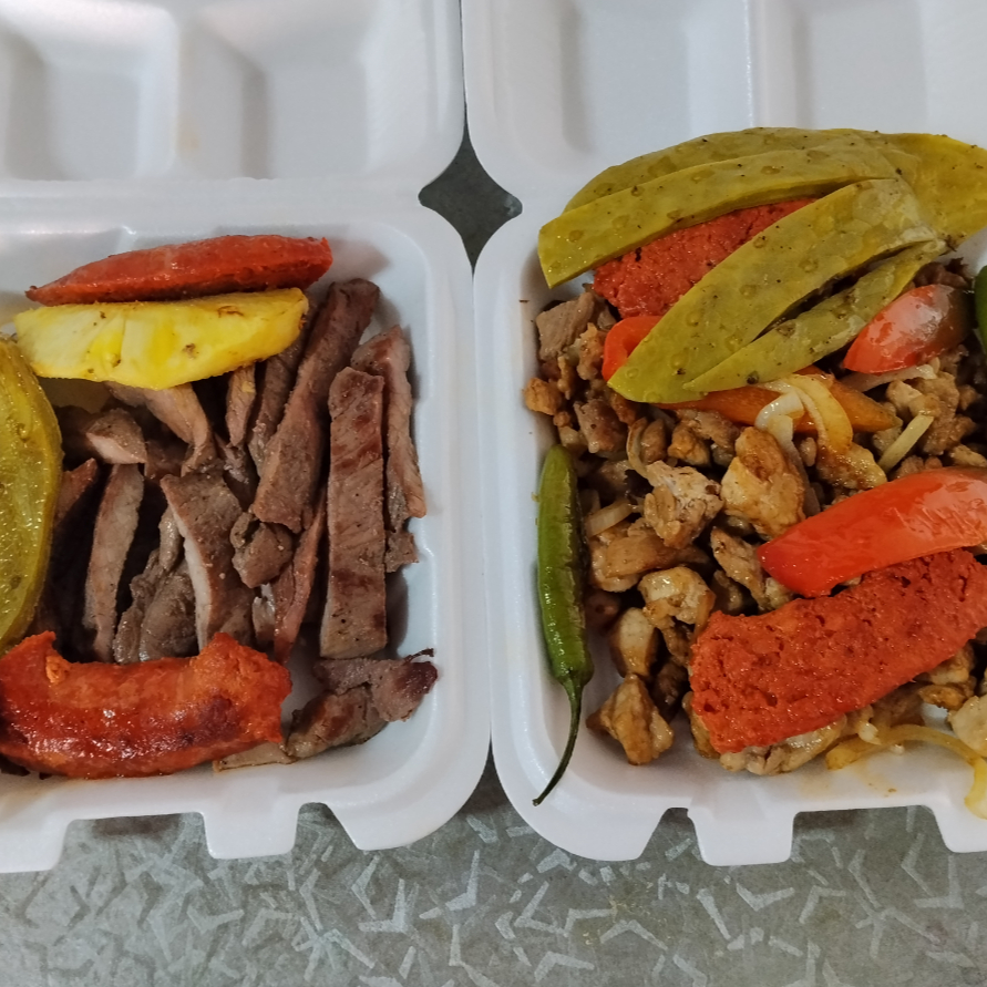 ARRACHERA, AGUJA NORTEÑA, LONGANIZA, CHORIZO ARGENTINO,NOPAL, PIÑA, SALSA, TORTILLAS
