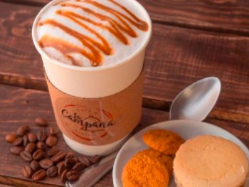 Versión la campana, frappe de caramelo con shot de espresso.