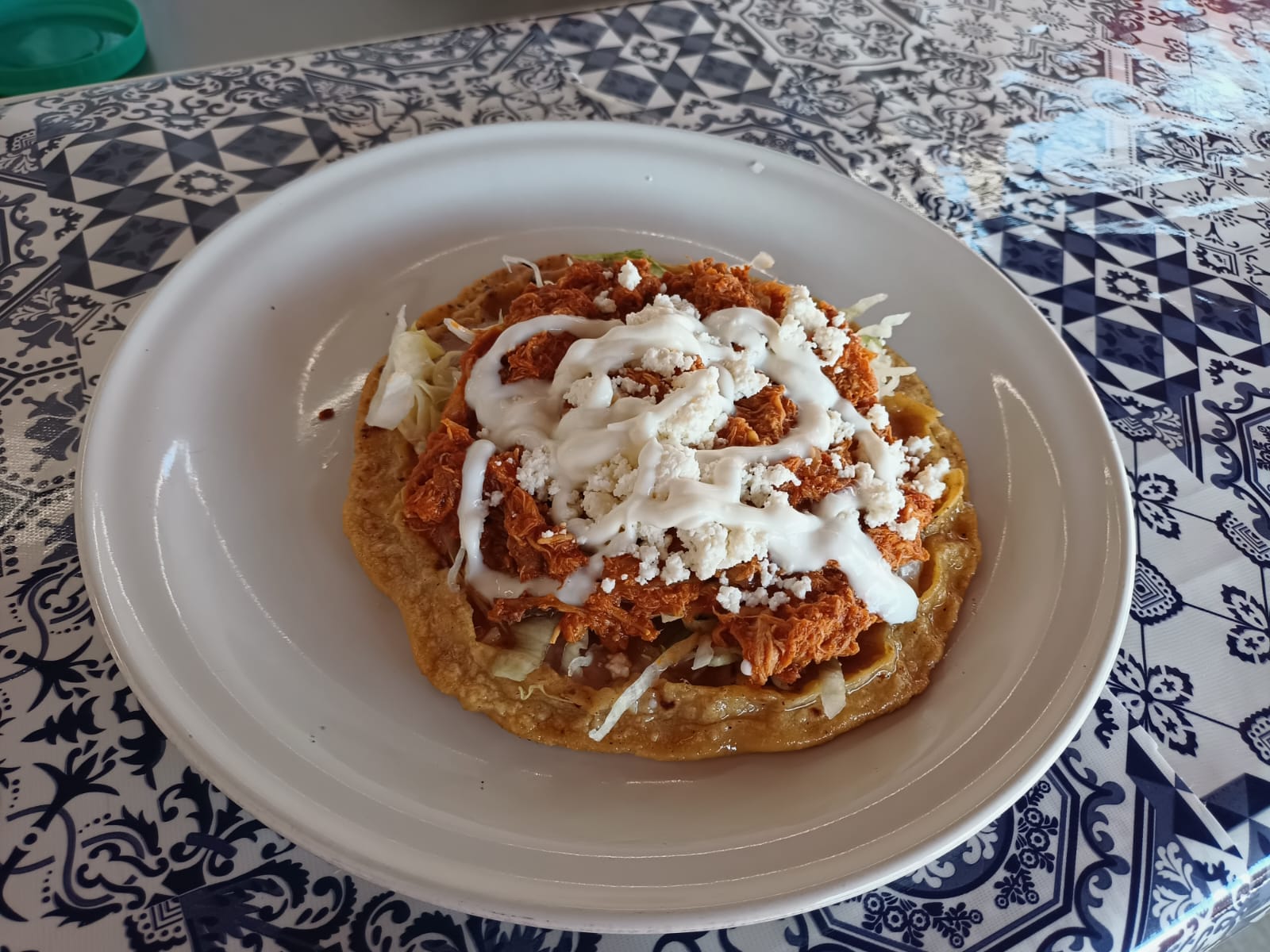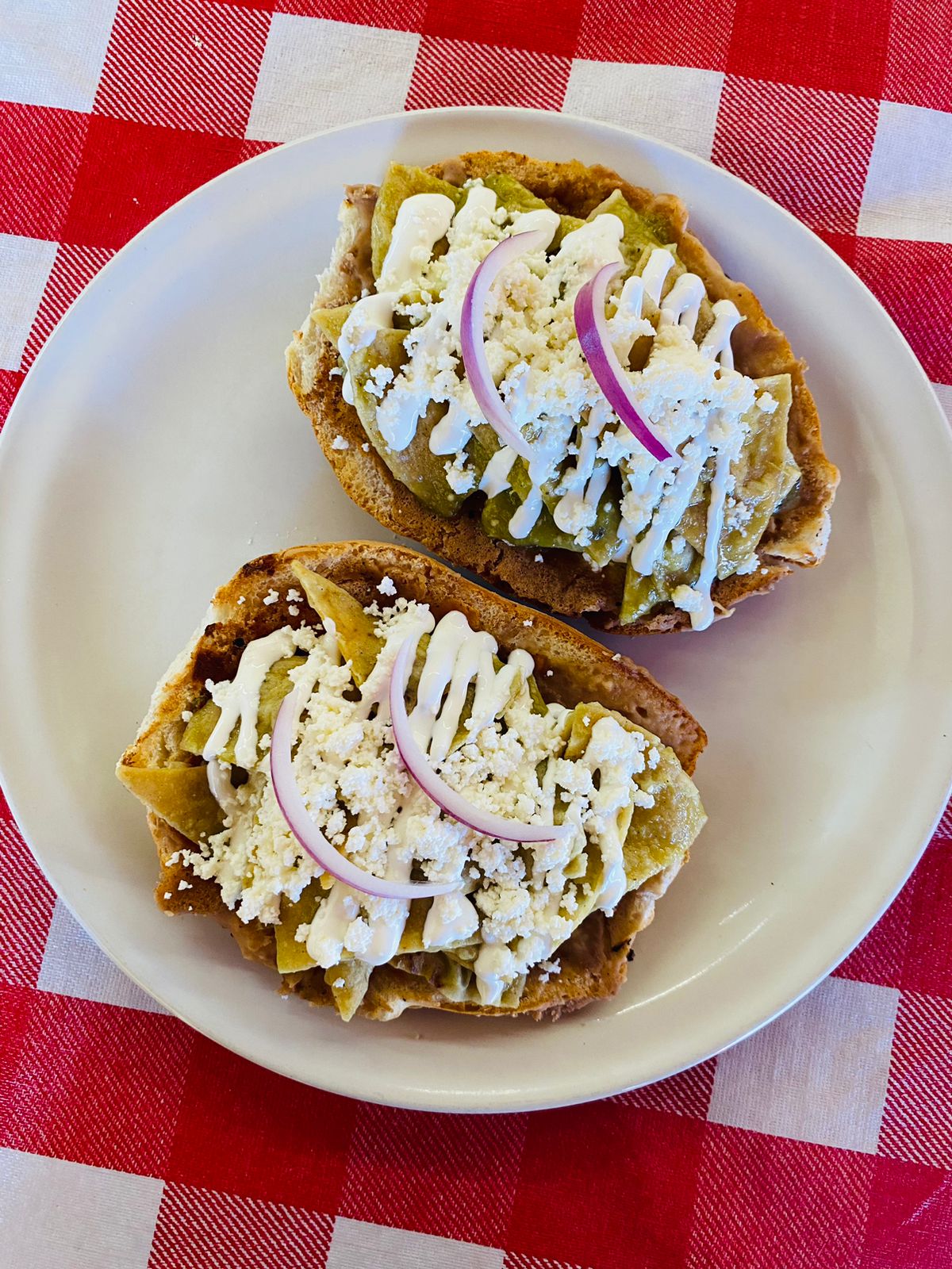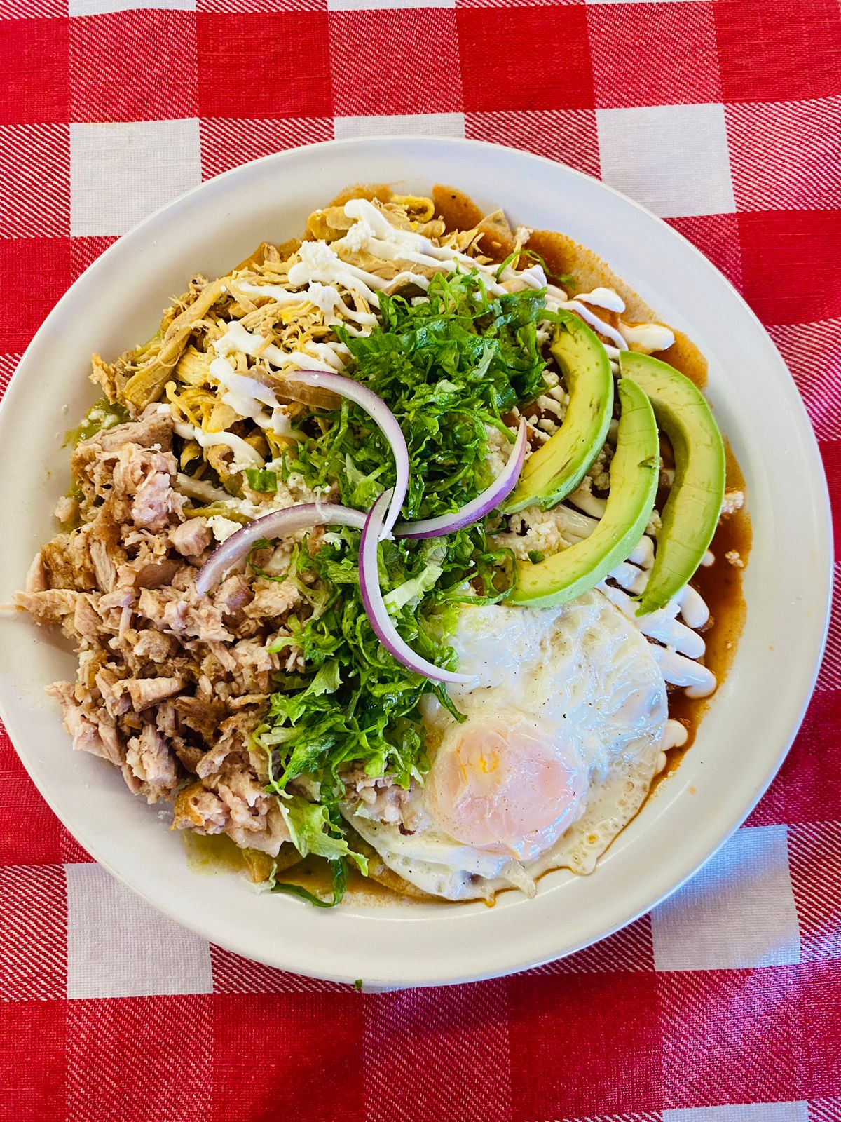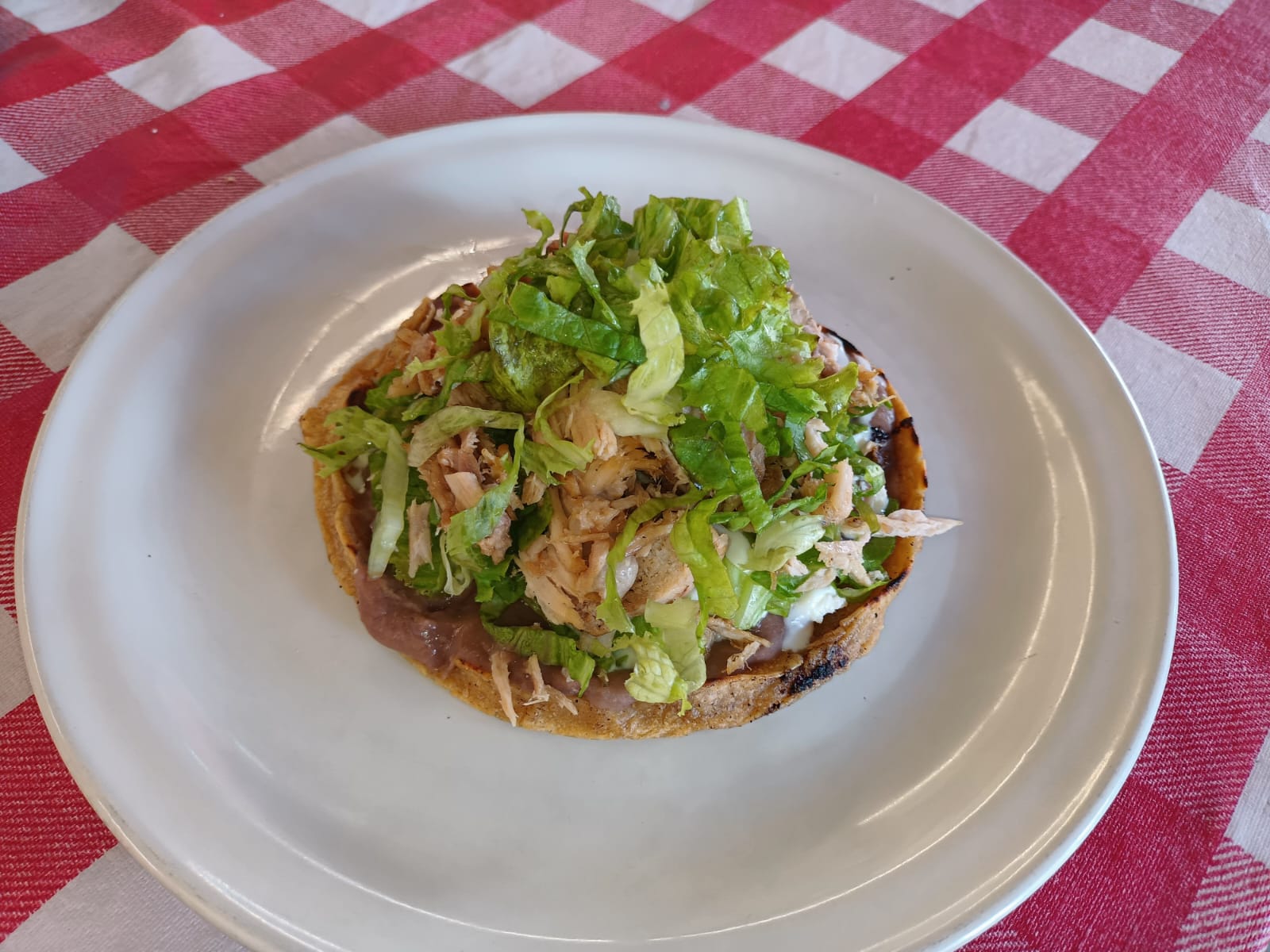 Con carnitas, pollo o huevo estrellado, lechuga, queso, crema y aguacate.
