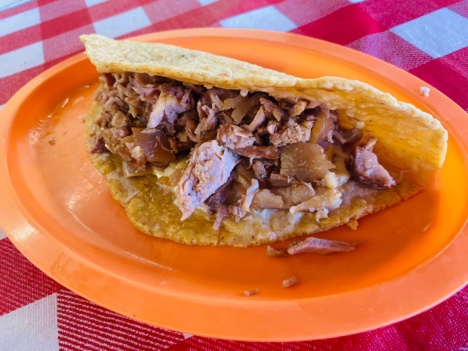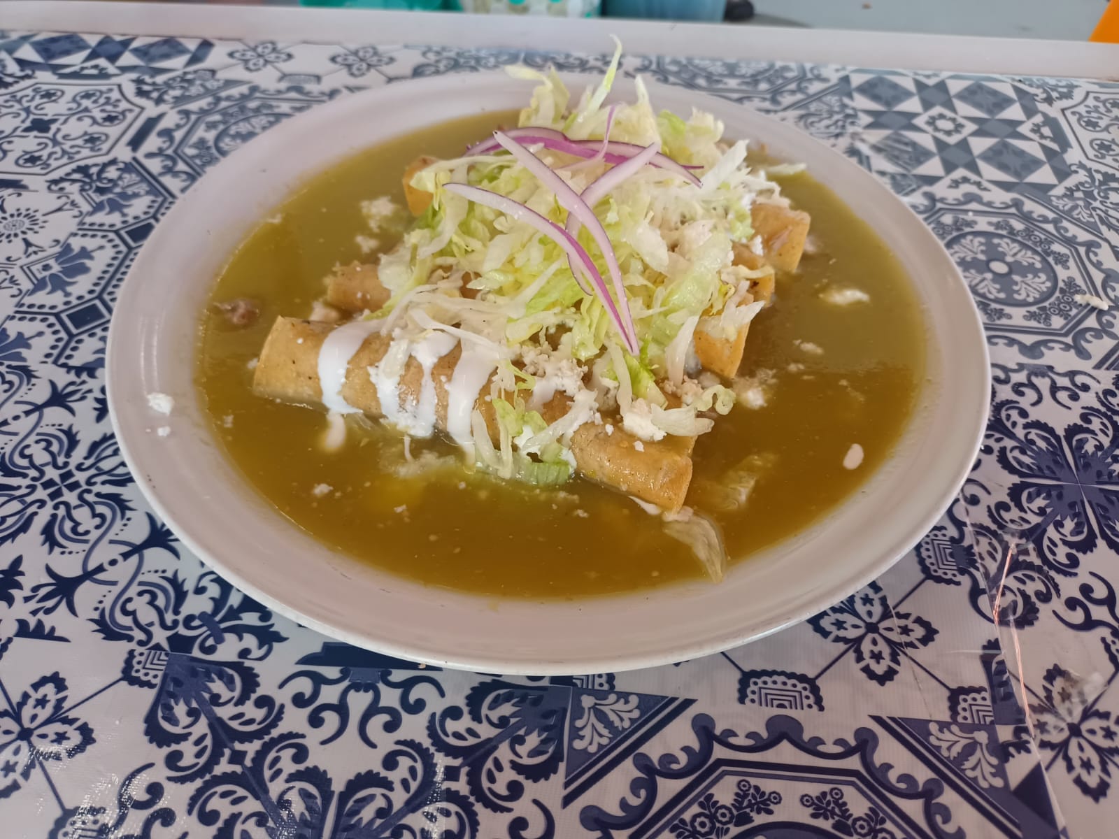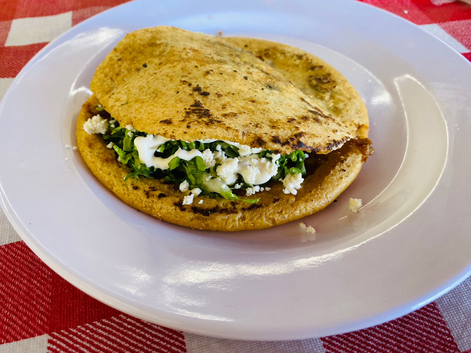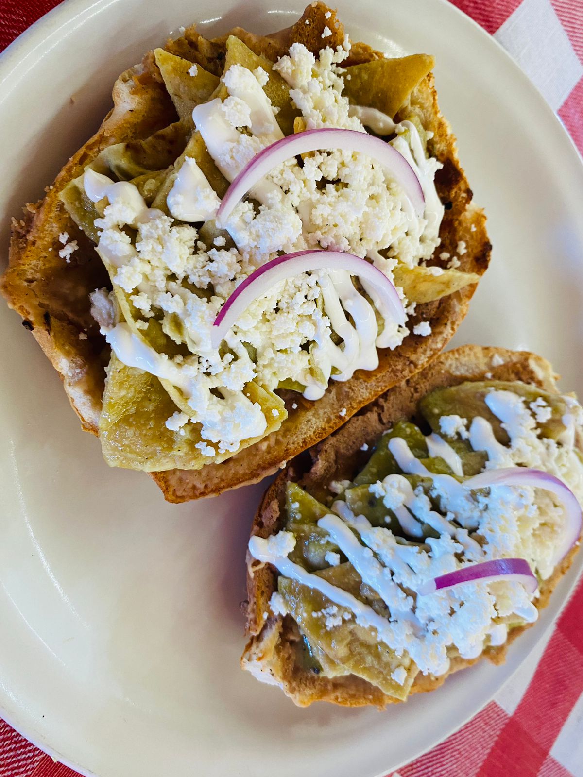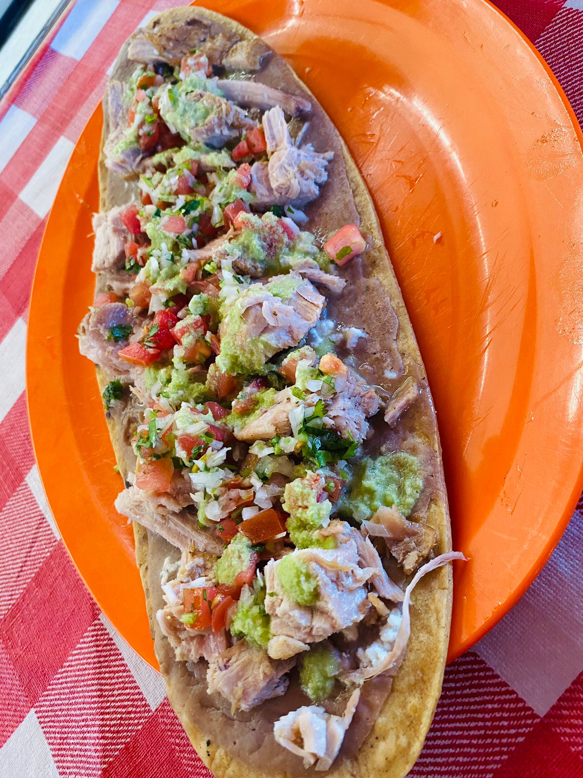 Con carnitas, pollo o huevo estrellado, lechuga, queso, crema y aguacate.