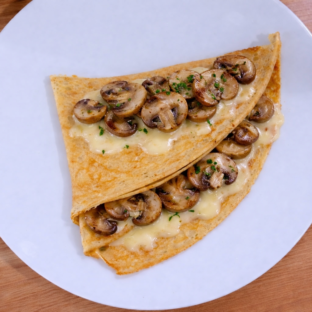 Queso Gouda, champiñones y pollo.