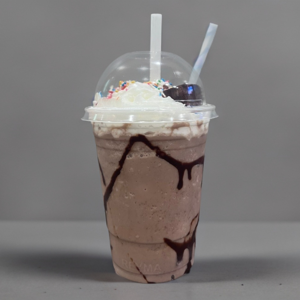 Bebida frappé preparada con leche entera, hielo triturado, saborizante seleccionado, un toque de azúcar y coronado con toppings dulces que complementan cada sabor a la perfección. Mezclado al momento para lograr una textura suave, espesa y súper refrescante.
