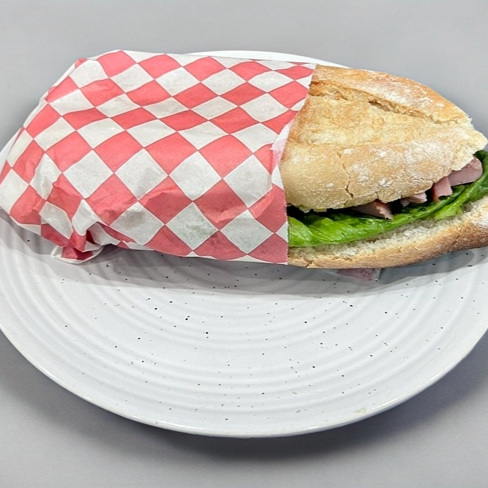 Crujiente cuernito de mantequilla, relleno con finas rebanadas de jamón de pavo, una mezcla irresistible de queso gouda y queso americano derretido, y una base de mayonesa y mostaza que potencia el sabor. Acompañado de lechuga sucrine fresca, cebolla, jitomate en rodajas, pepino crujiente, rodajas chiles en vinagre y aderezo de chipotle.