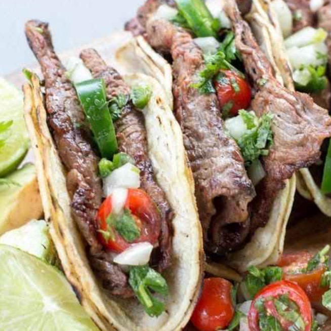 ½ de asada mixta (aguja, res, cerdo y pollo), frijoles charros, chorizo argentino, 1 salchichón, tortillas a mano, cebollitas y nopales, salsas.