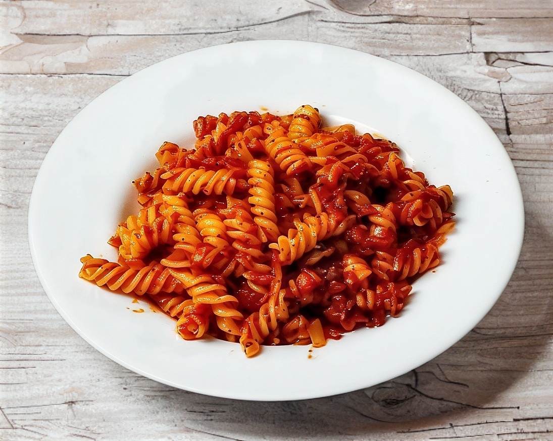 220 gramos de la pasta de tu elección bañada en salsa de tomate picatinta, con tocino y cebolla