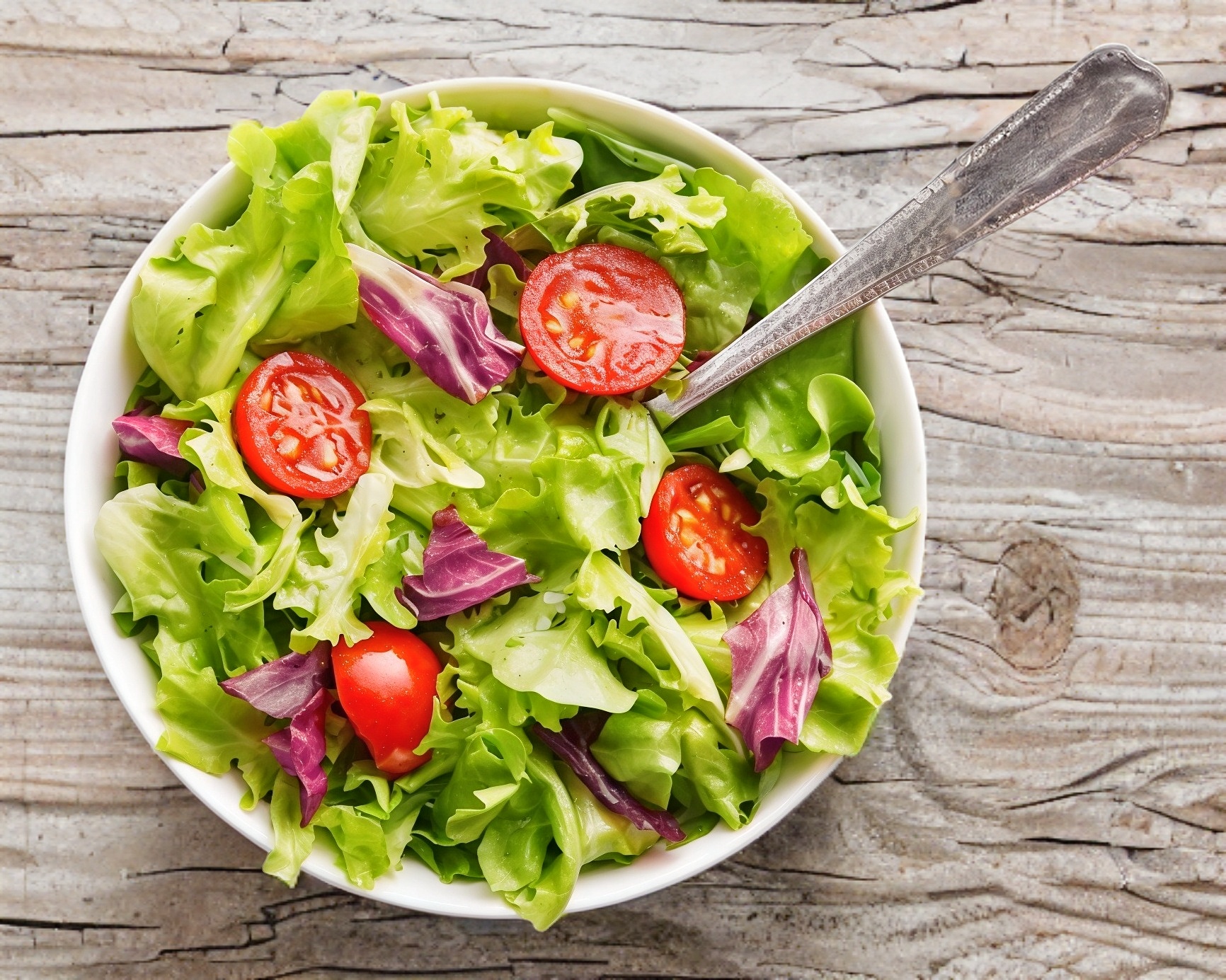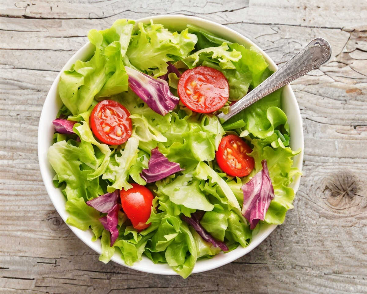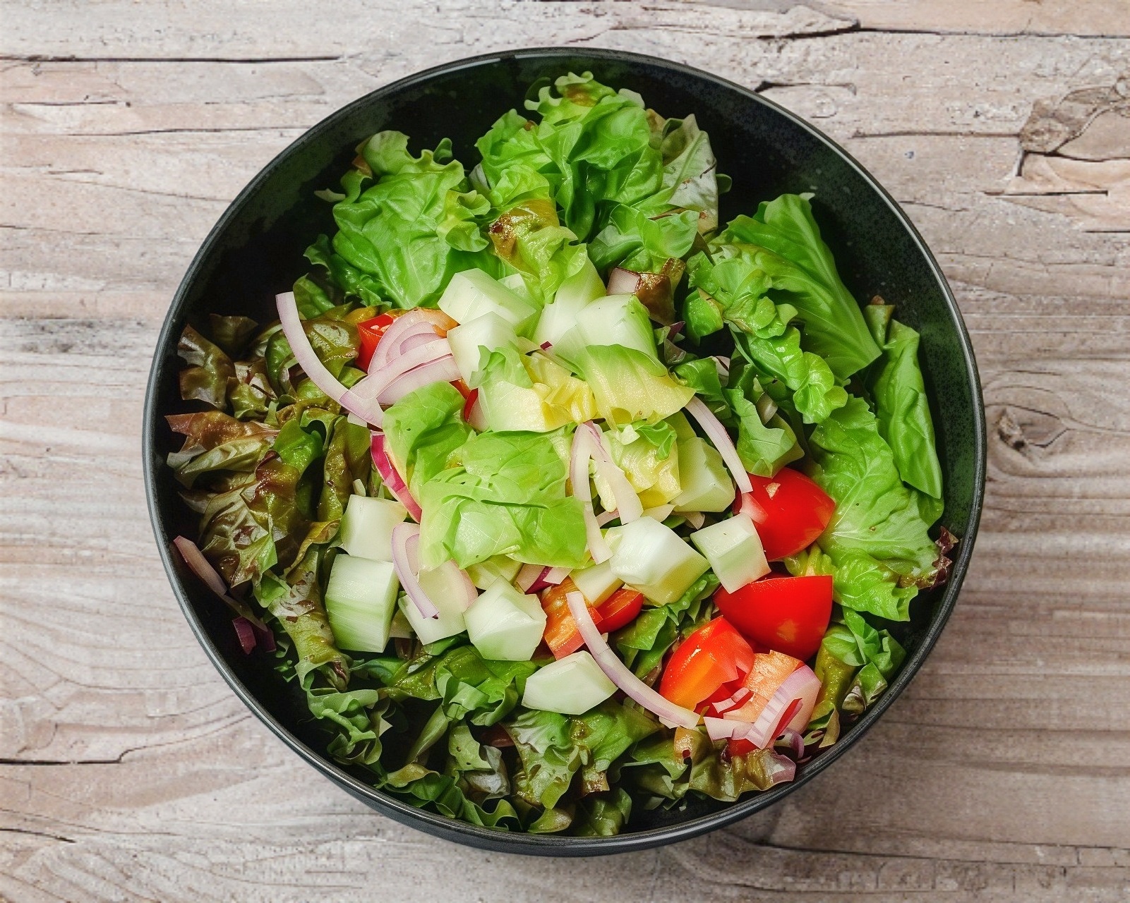 Lechuga, jitomate, cebolla morada, pepino y aguacate