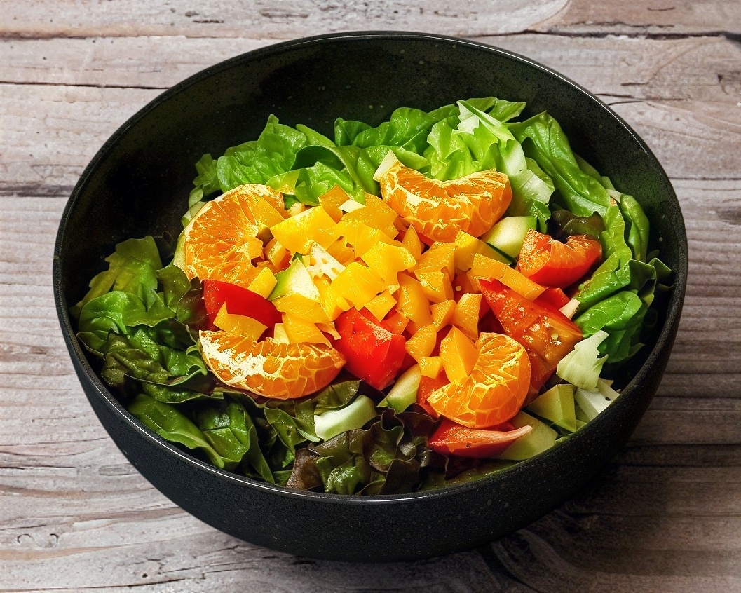 Lechuga, mandarina, pimientos, jitomate y pepino