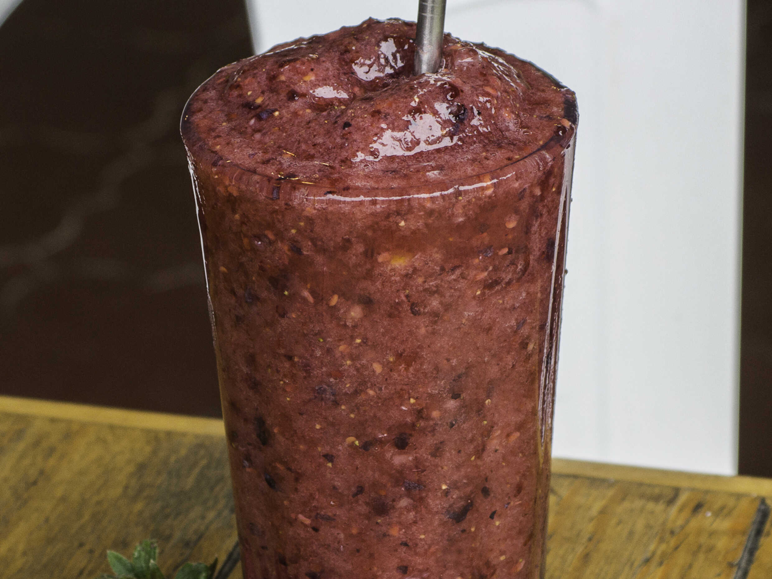 Frappé hecho con Fresa, Zarzamora, Frambuesa y Mora Azul natural 473 ml.