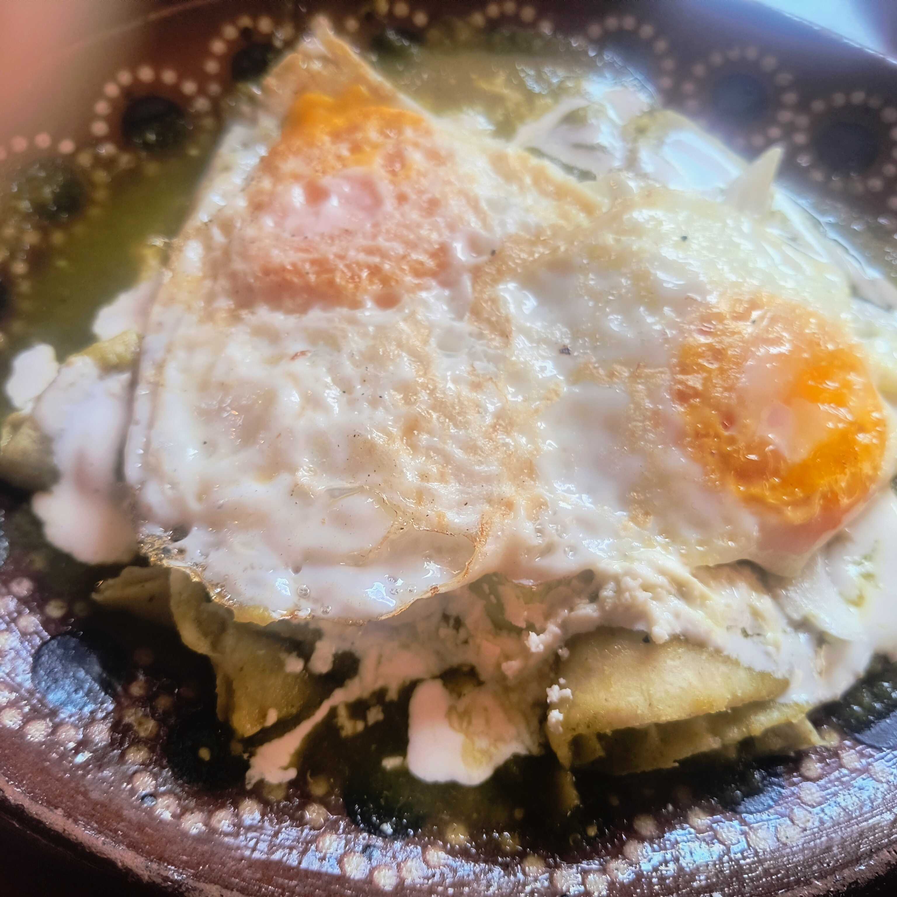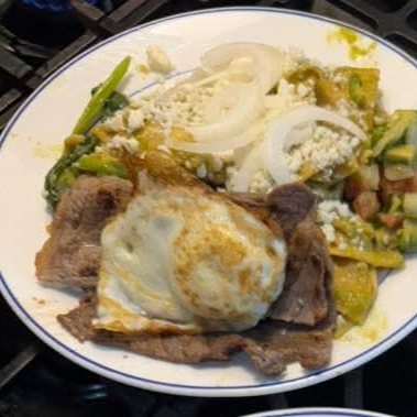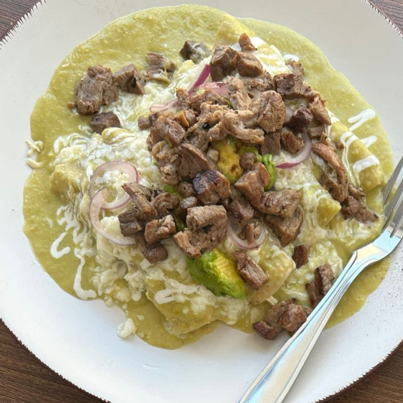 CHILAQUILES VERDES CON ARRACHERA y UN HUEVO