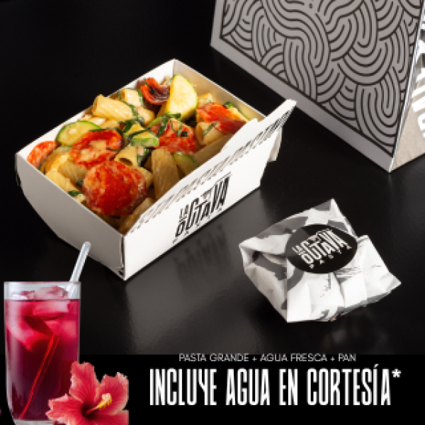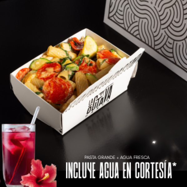 Pasta 7 Mediana-Pasta penne salsa jitomate y albahaca, mix de ho