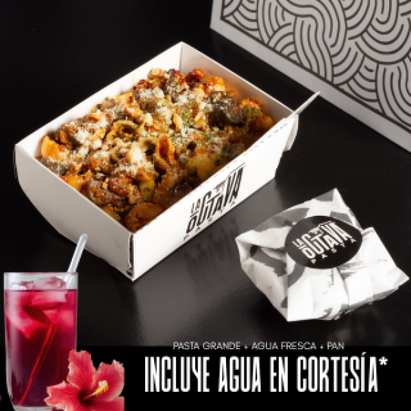 Pasta 8 Grande- Pasta Spaghetti salsa mantequilla y tocino + pep