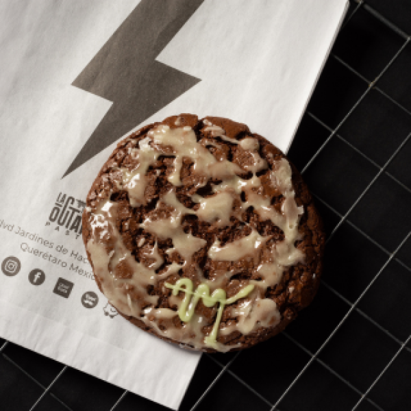 Galleta grande de brownie de chocolate con glaseado de toque de menta.