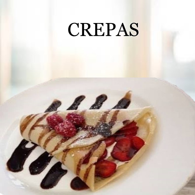 Endulzadas con Lechera, Nutella o Hershey's, rellenas de plátano, durazno o fresa, espolvoreadas con canela, azúcar glass o nuez.