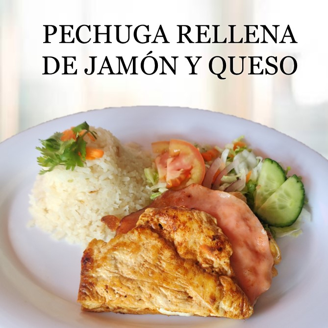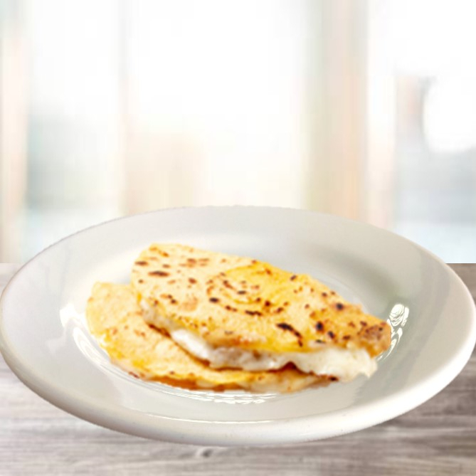 3 Piezas, rellenas de pollo o queso, acompañadas de frijoles refritos, queso y crema, incluye café o té, bolillo, fruta y vaso con agua de fruta del dia.