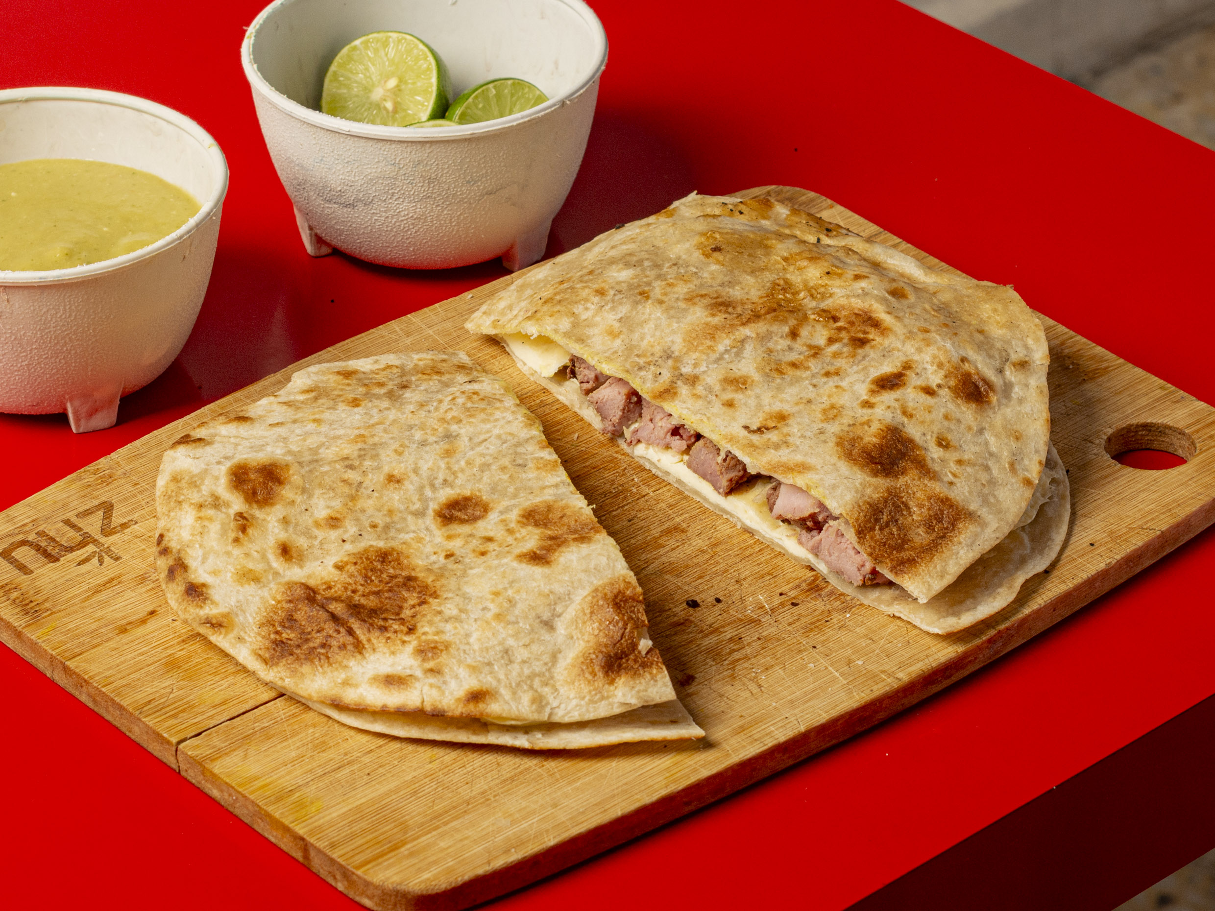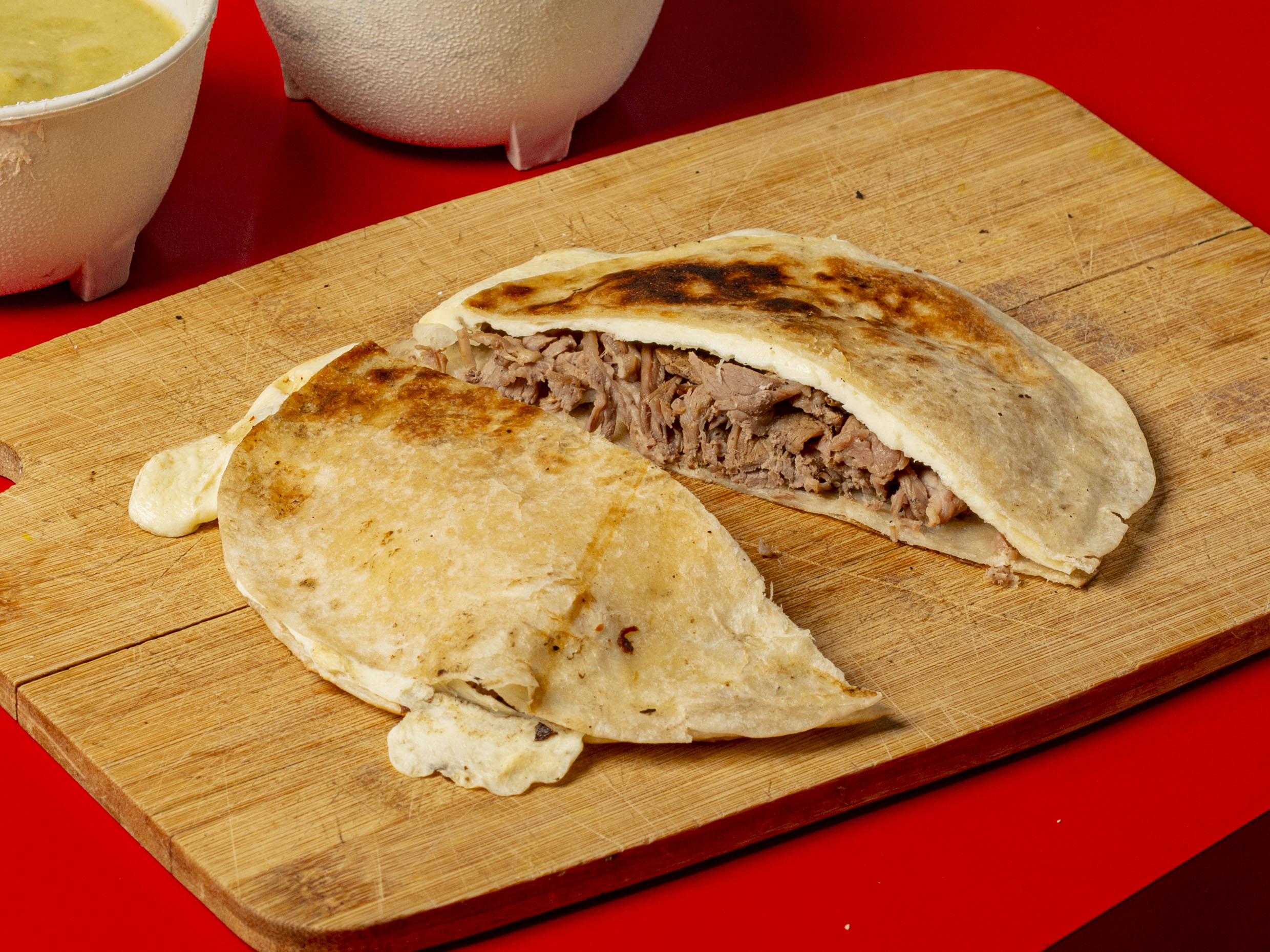 2 TORTILLAS DE HARINA, CHORIZO Y OAXACA