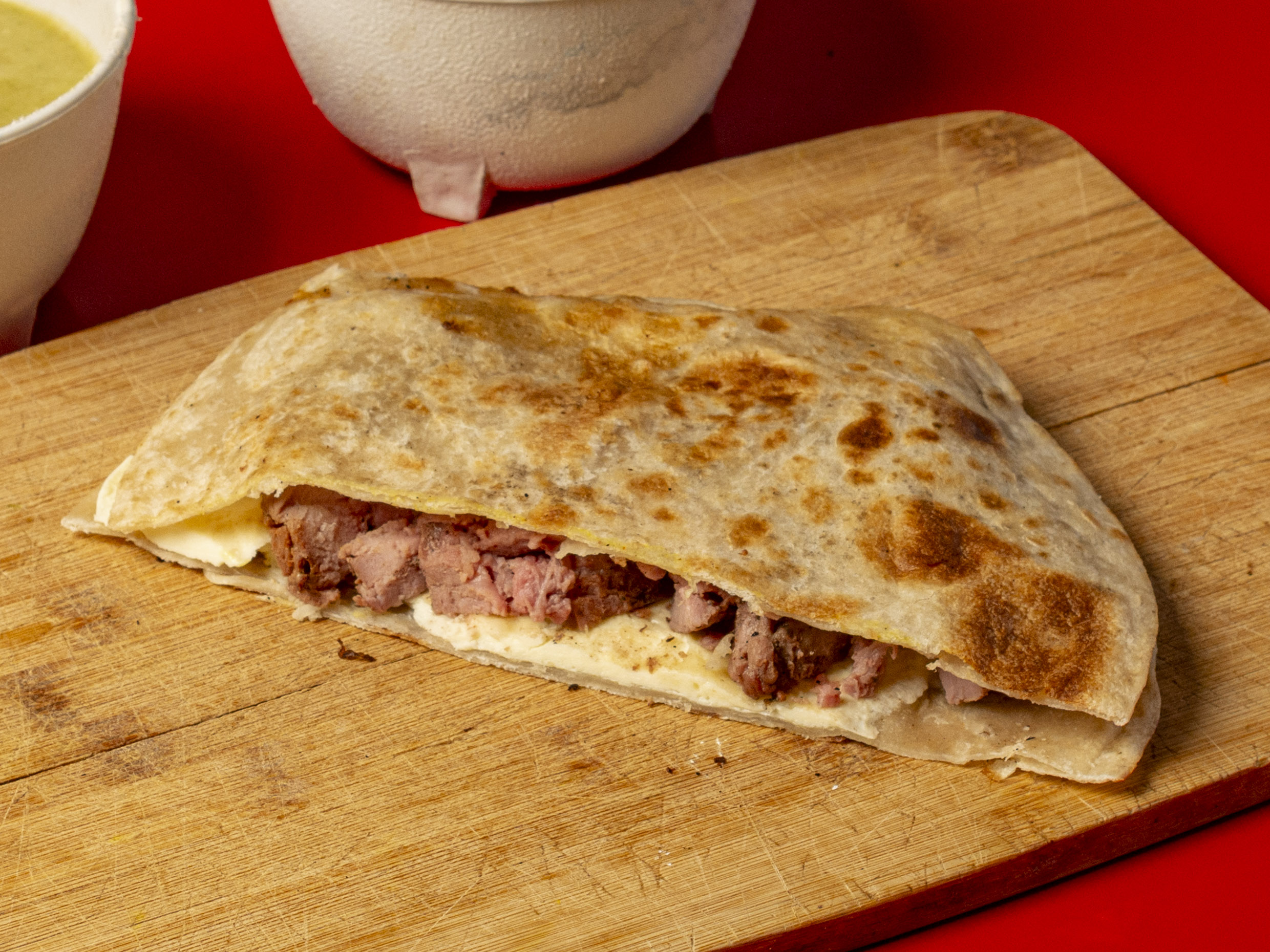 2 TORTILLAS GRANDES DE HARINA, ARRACHERA Y OAXACA