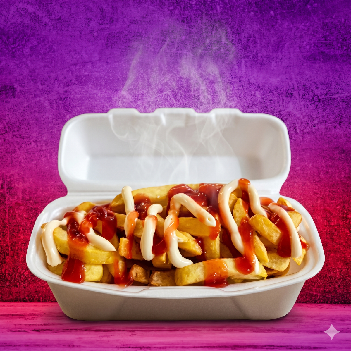 Porción individual de papas fritas, doraditas por fuera y suaves por dentro, el complemento ideal.