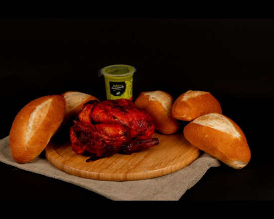 1 pollo a elegir 1 salsa a elegir y 5 bolillos