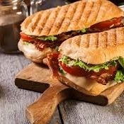 Pan llamado chapata de ajo y perejil, jamón de pavo, Lechuga, queso panela, jitomate, aguacate y pechuga asada o milanesa empanizada