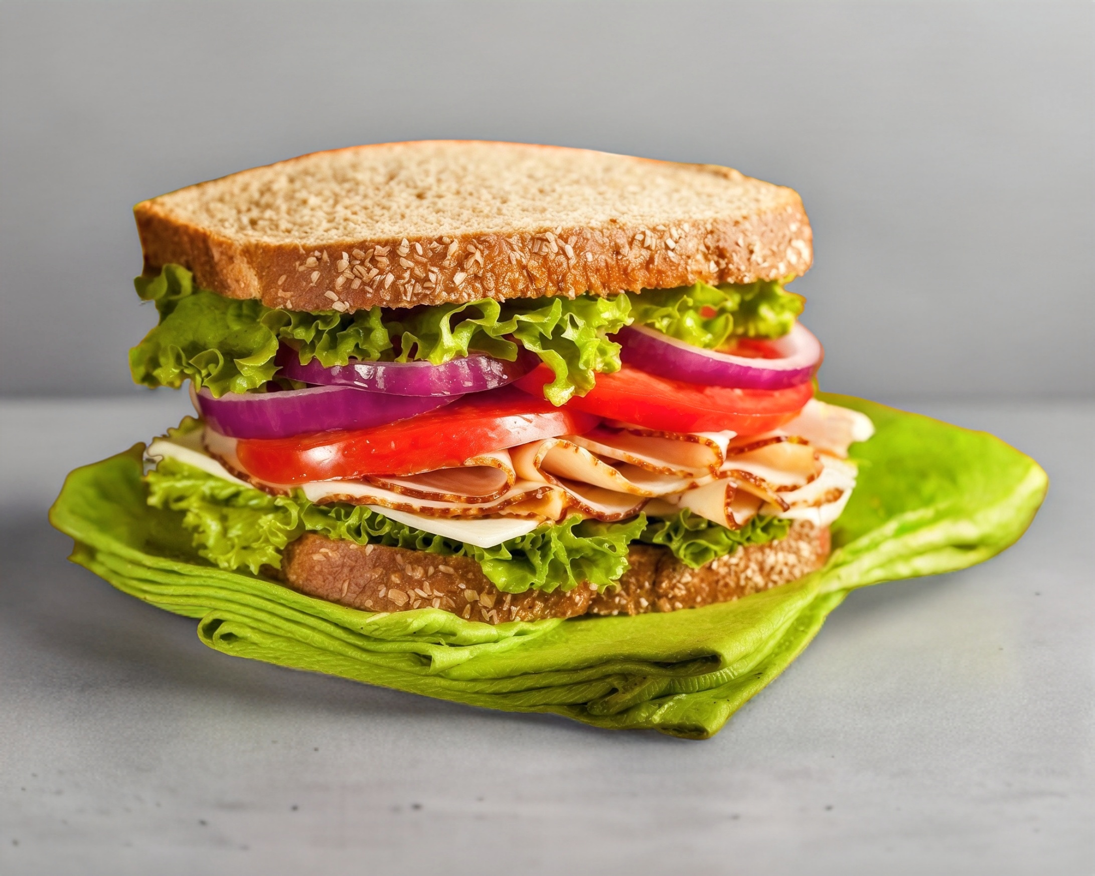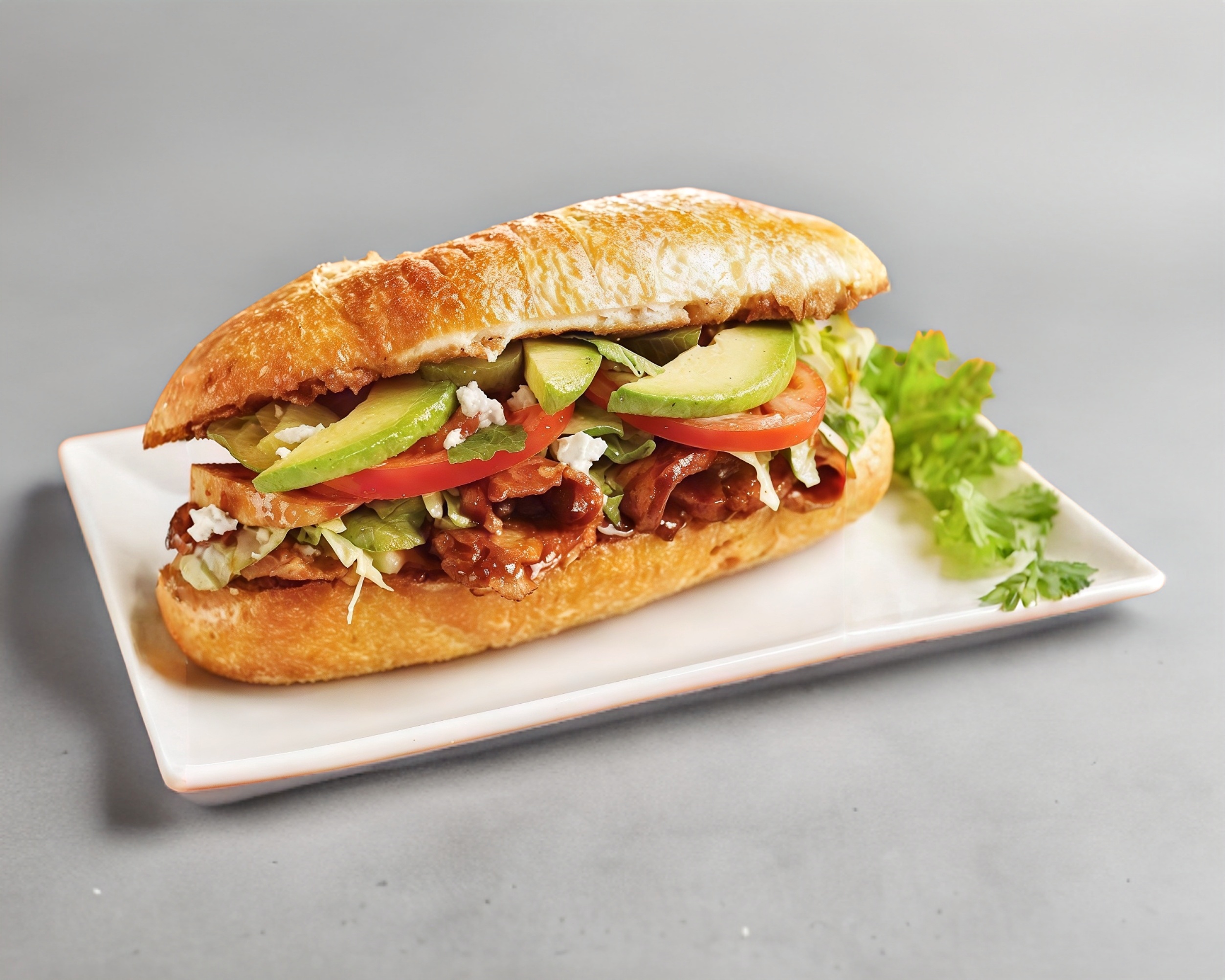 Pan integral, jamon de pavo , mayonesa, jitomate, aguacate, cebolla, lechuga y salsa de chipotle