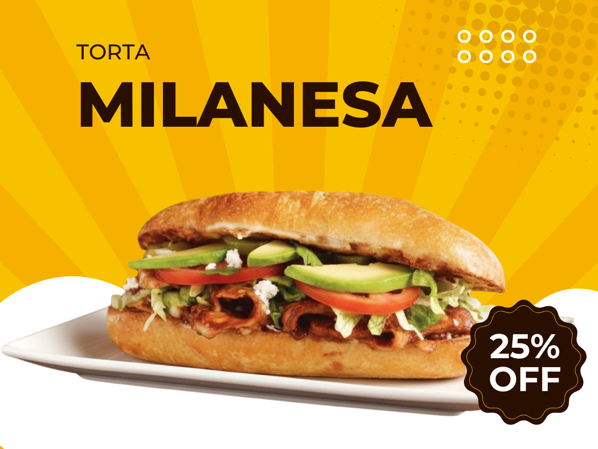 Telera del dia con queso oaxaca, mayonesa, cebolla, jitomate, aguacate y salsa de chipotle