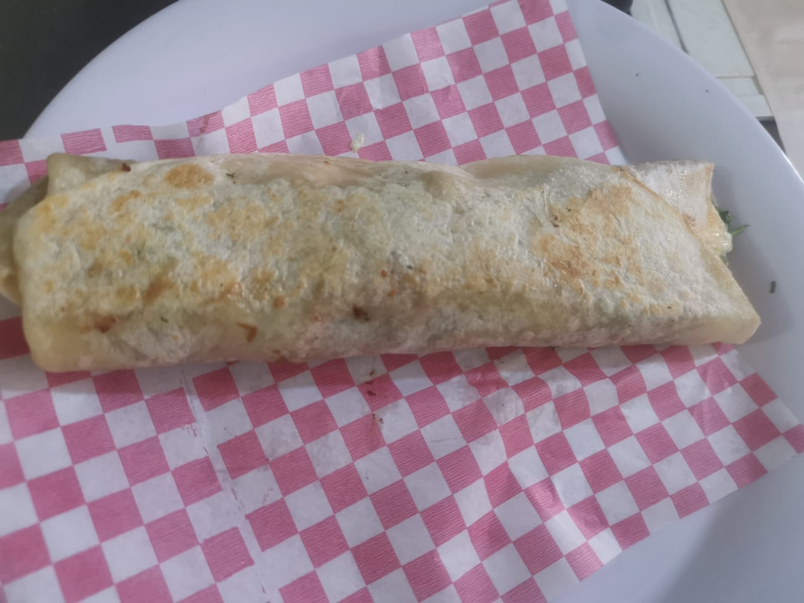 Tortilla de harina, con queso y proteína.