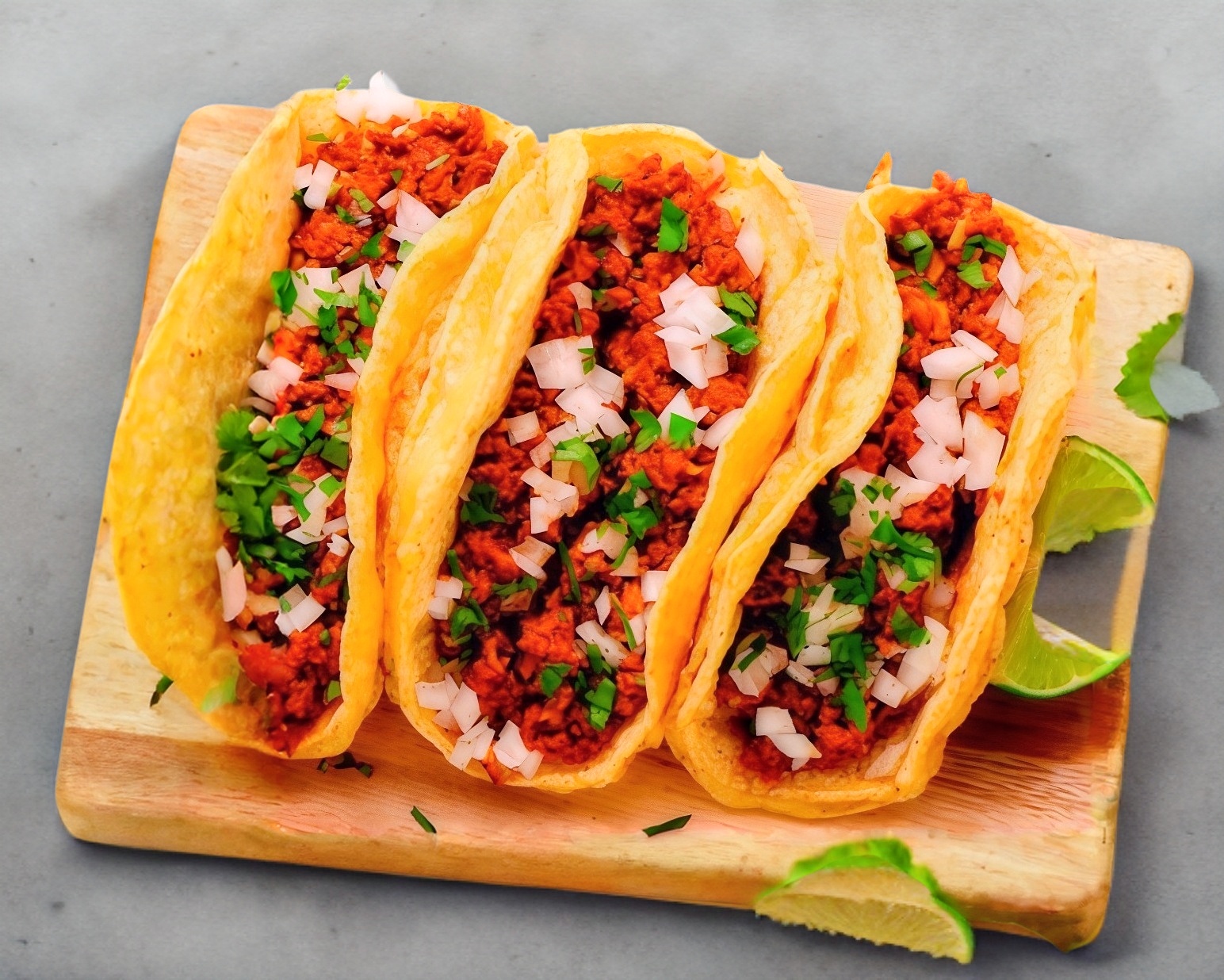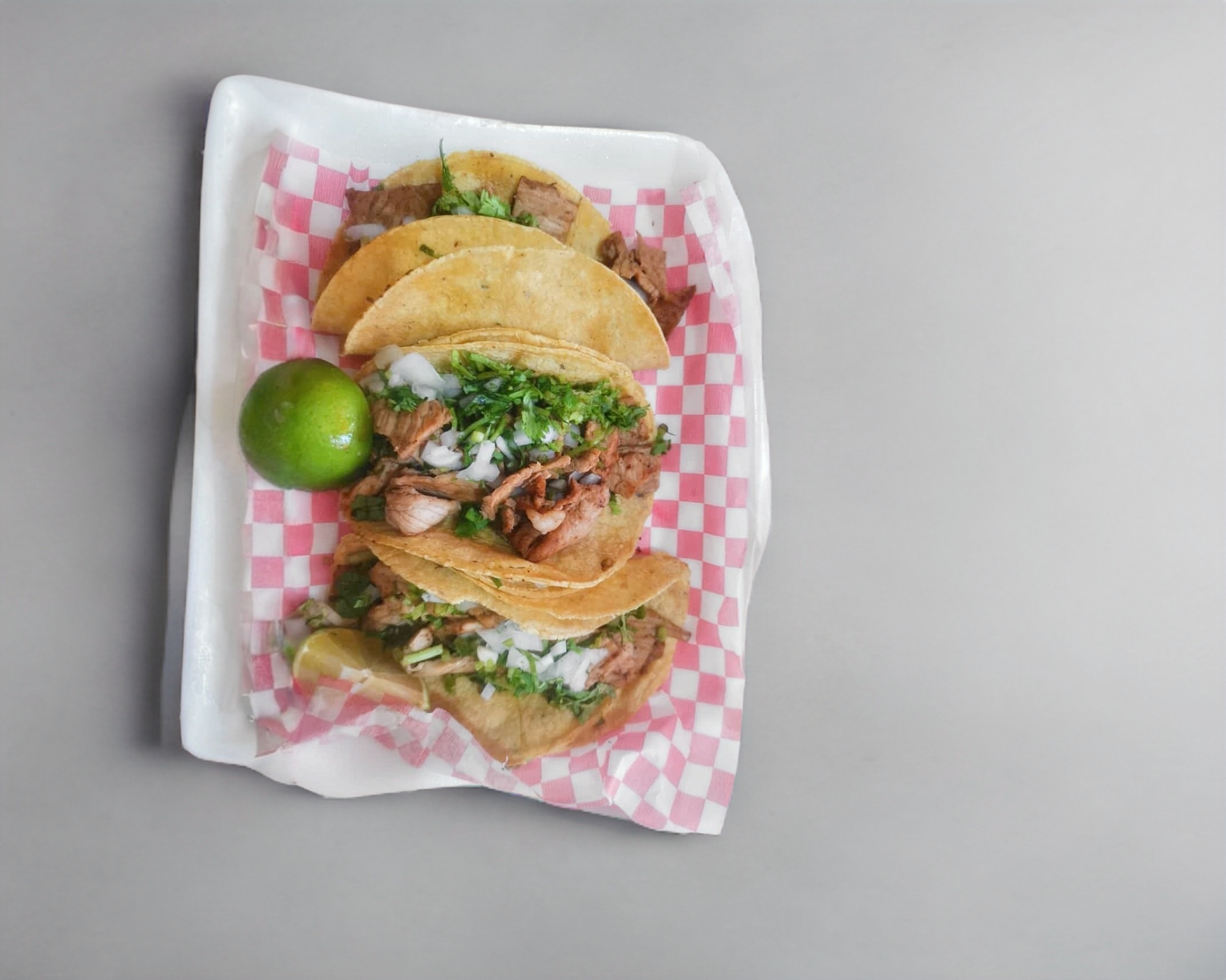 Taquito de Bistec porcion personal contiene Doble tortilla de maíz con proteína cebolla y cilantro y salsa roja aparte