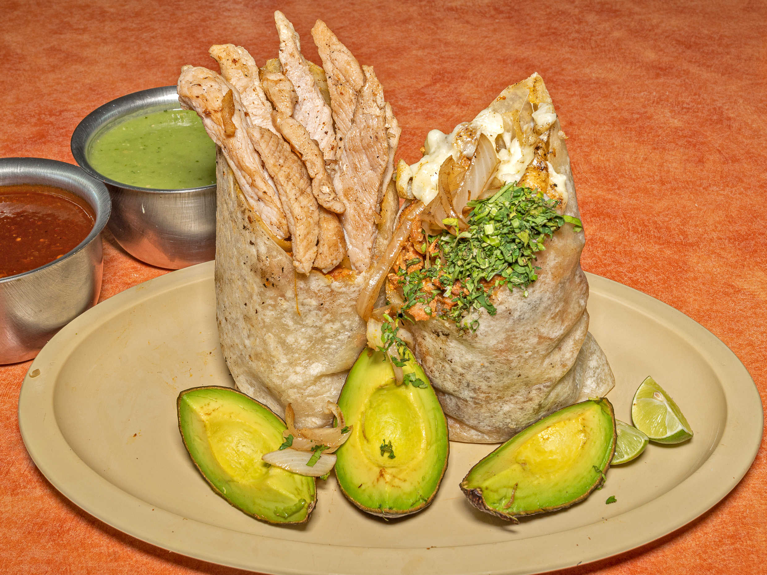 Carne selecta de arrachera (150gr), queso amarillo jitomate, cebolla, chiles, aguacate en un pan artesanal con ajonjolí negro. cátsup, mostaza y mayonesa.