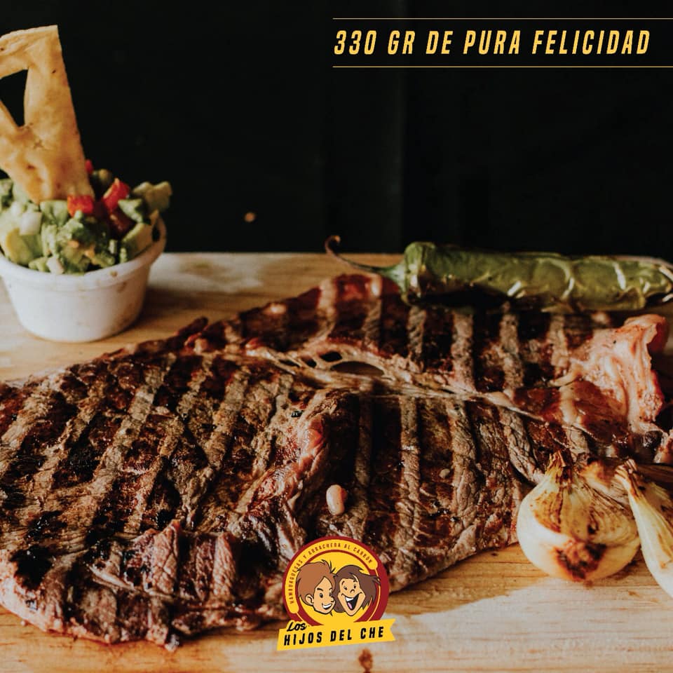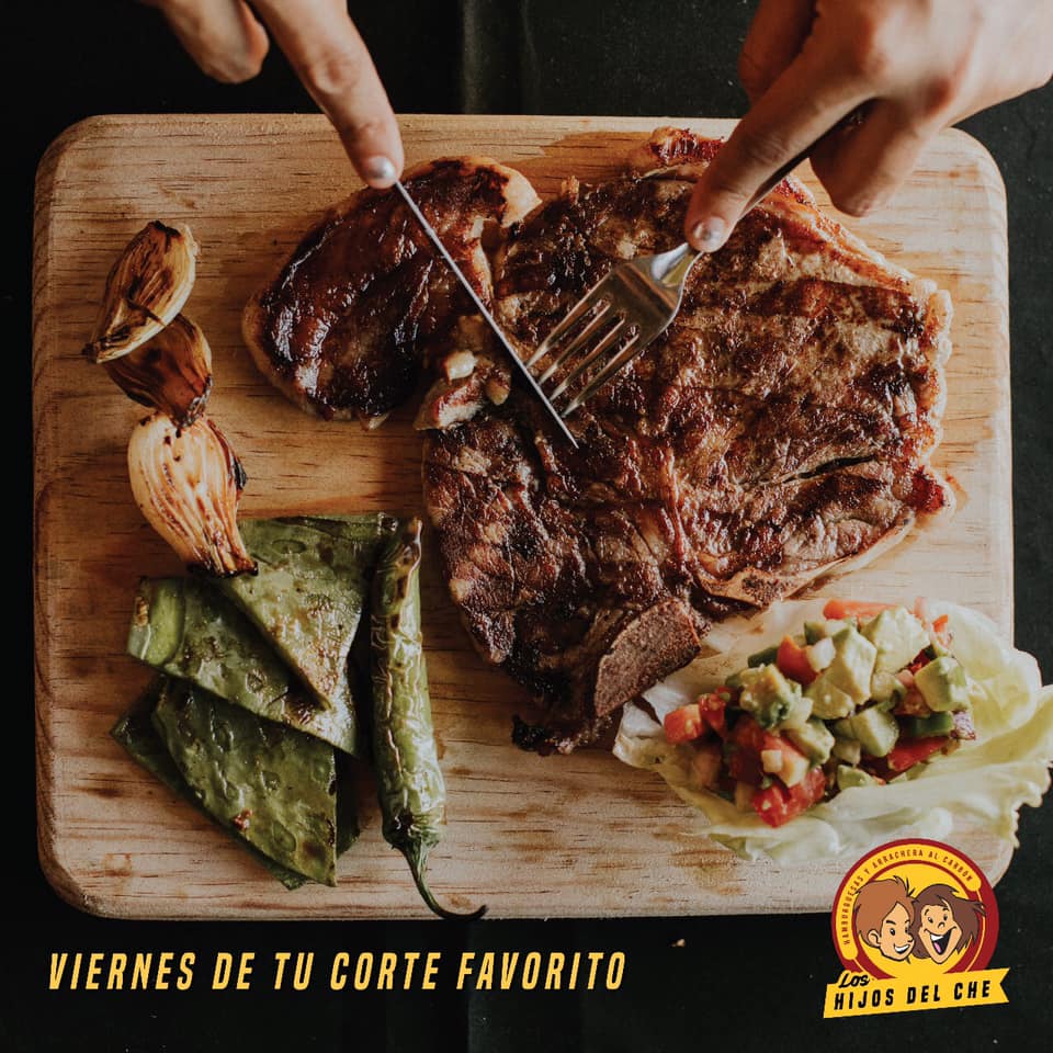 Arrachera, papas a la francesa, alitas, quesadillas, guacamole, nopales, cebollitas, tortillas y salsas.