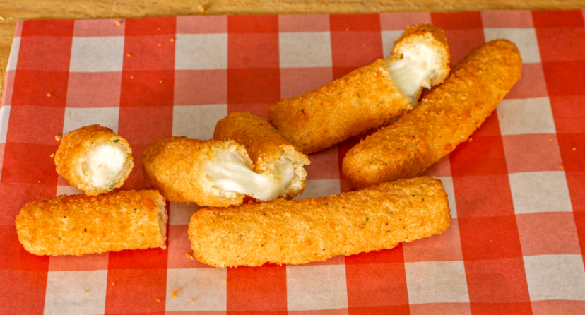Salchicha envuelta en tocino, gratinada a los 3 quesos, salsa pomodoro y pepperoni