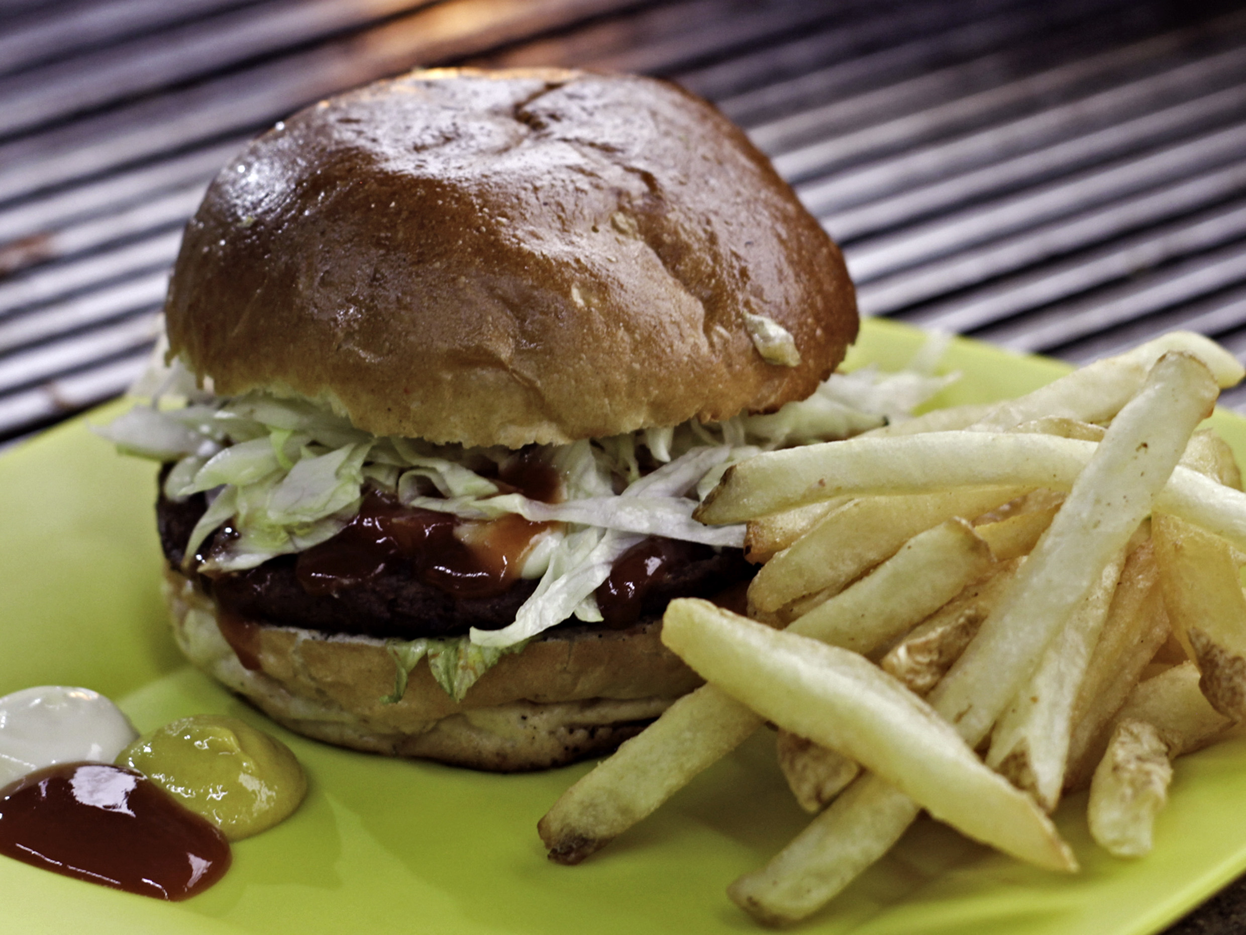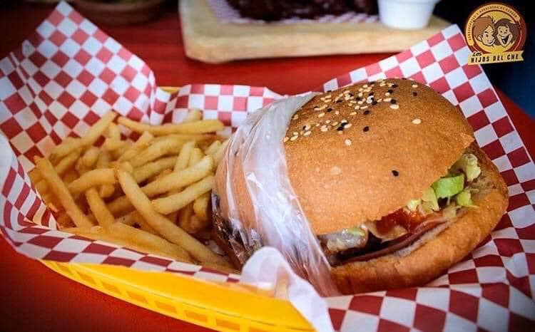 Carne, queso amarillo, jitomate, cebolla, lechuga, catsup, mayonesa y salsa picante.