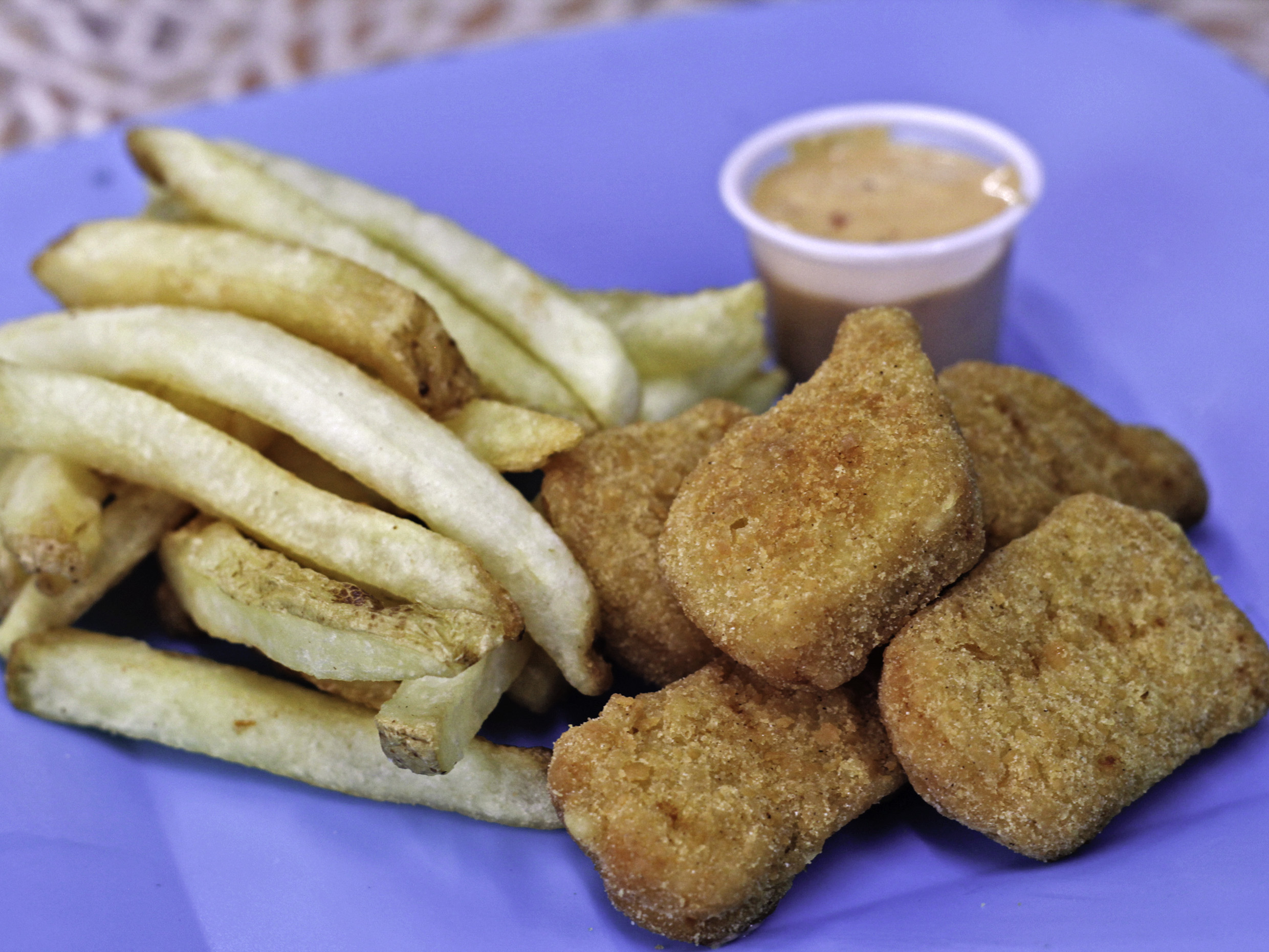 Carne, durazno, jamón, queso amarillo y blanco, jitomate, cebolla, lechuga, catsup, mayonesa y salsa.