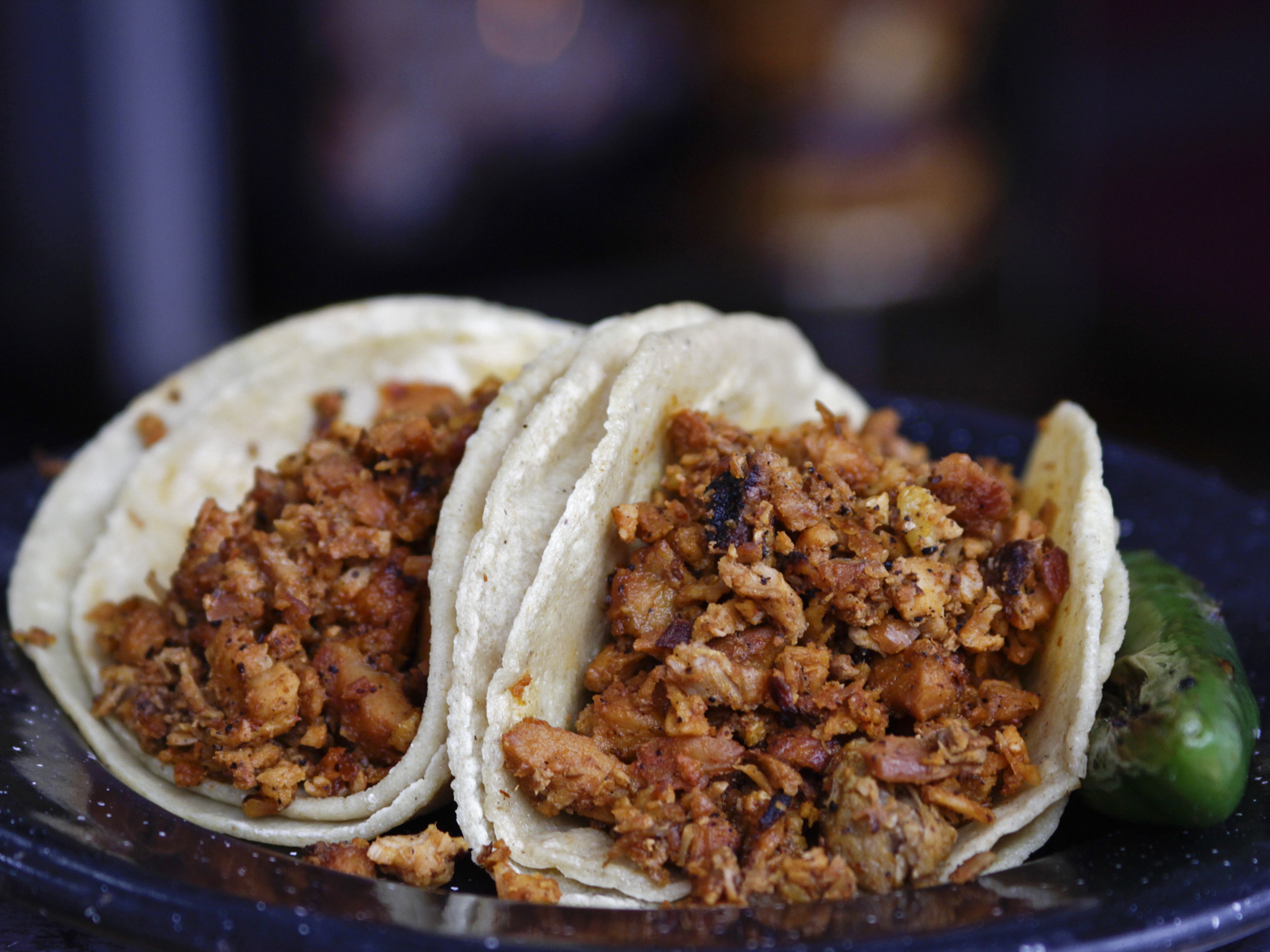 8 Tacos de Chorizo Rojo y Queca de Pastor