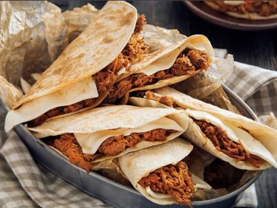 4 Quesadillas y 1 taco de pastor, tortilla de harina doblada por la mitad incluye queso gratinado y la proteína de tu gusto. Cebolla asada y papa se vende aparte