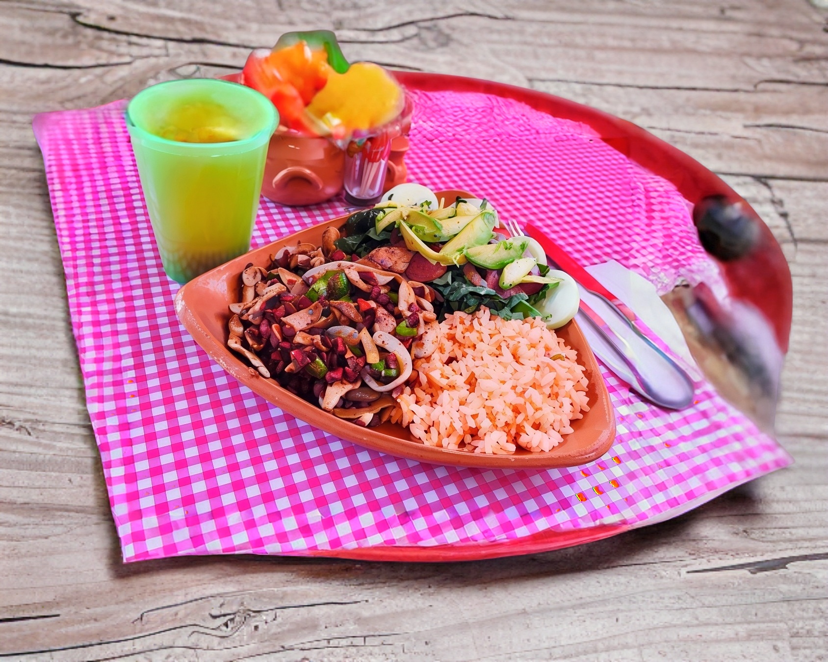 Chorizo, lechuga, jitomate, aguacate, frijoles y chiles en vinagre ( porción 1 persona)
