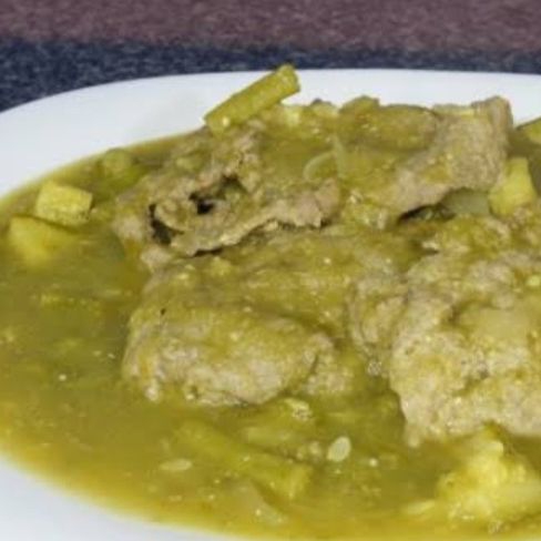 Bisteck de puerco guisado en salsa verde, acompañado con arroz, frijol y tortillas (porción 1 persona)