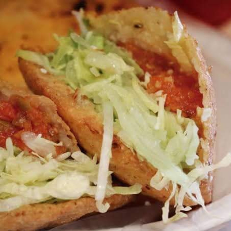 GORDITA RELLENA DE MIGAJA CON LECHUGA QUESO Y CREMA